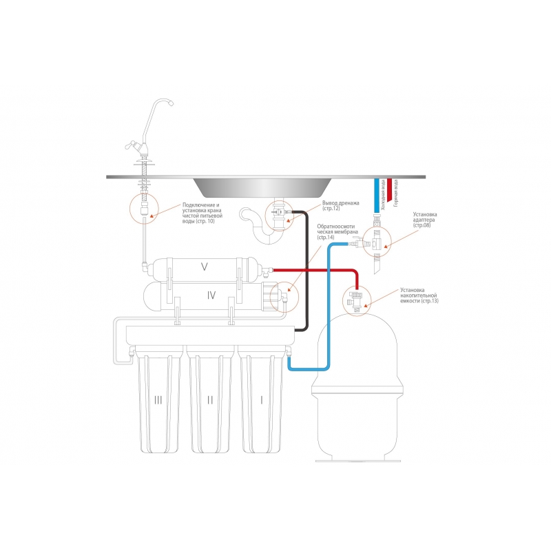 Основным элементом в данной системе является обратноосмотическая мембрана, которая обеспечивает высокую степень очистки (до 99,9 %) практически от любых загрязнений и удаляет содержащиеся в воде соли жесткости. Особенностью данной системы является наличие насоса, повышающего давление, что делает возможным применение данной системы в сетях с низким давлением. Если давление в точке, где Вы планируете установить систему более 3 атм., рекомендуем не переплачивать и приобрести систему без насоса.