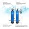 2) Вторая ступень очистки — Аэрационная колонна предназначена для насыщения водопроводной, скважинной или колодезной воды кислородом, необходимым для окисления металлических примесей, отделения углекислого газа, сероводорода и других веществ. Модель оснащена датчиком потока, поэтому включение и отключение аэрационной колонны происходит в автоматическом режиме. Во время прохождения воды через станцию водоподготовки, датчик потока срабатывает, и подавая питание, включает воздушный компрессор. Компрессор по трубке, через обратный клапан, начинает нагнетать под давлением (до 6 атм.) в трубу с водой — кислород. Таким образом, очищаемая вода смешивается с пузырьками воздуха и через вход в распределительный оголовок попадает в корпус аэрационной колонны. Внутри корпуса аэрационной колонны происходит процесс взаимодействия воды с кислородом. Примеси (сероводород, углекислый газ и т.д.) через воздушный коллектор оголовка аэратора поступают на воздуха-отделительный клапан и удаляются в дренажную систему. Окисленное железо и марганец, через выход оголовка аэрации, поступают на следующую ступень станции водоподготовки (зачастую на установку обезжелезивания воды) для завершающего до окисления и полного удаления. Когда расход воды отсутствует, воздушный компрессор тоже не работает и воздух не нагнетается в корпус системы аэрации воды.