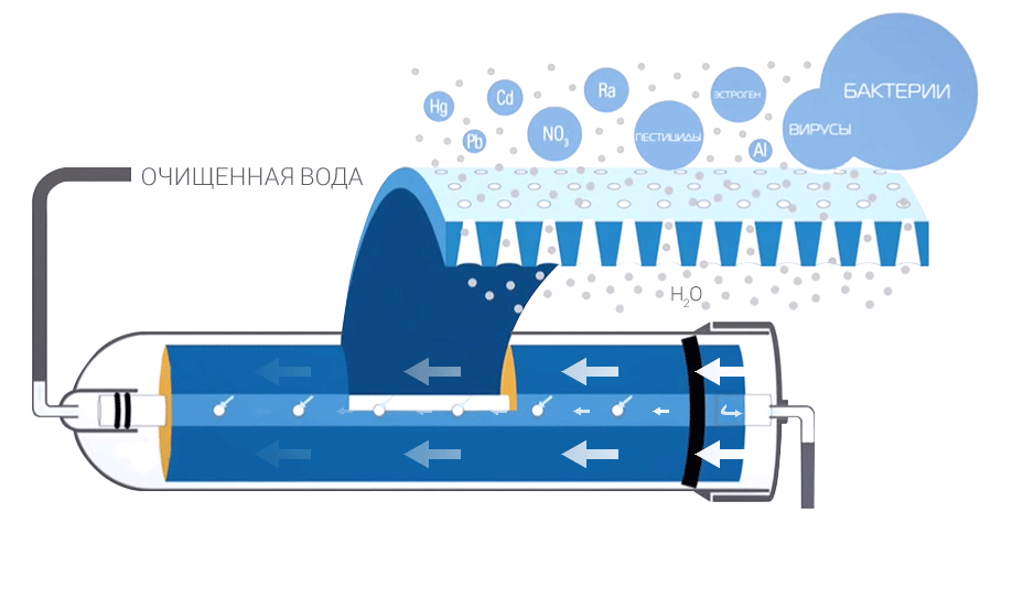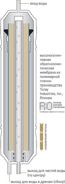 Фильтр 3 –Обратноосмотическая мембрана содержащая внутри высокоселективную мембрану последнего поколения из полимерной композитной пленки. Осуществляет наиболее полную очистку воды от механических примесей, бактерий и вирусов, растворенных органических и неорганических соединений (пестицидов, нитратов, растворенного железа, тяжелых металлов и др.). Полностью удаляет соли жесткости и решает проблему накипи на посуде. Устраняет неприятные запахи, улучшает вкусовые качества воды. ROMembrane Filter