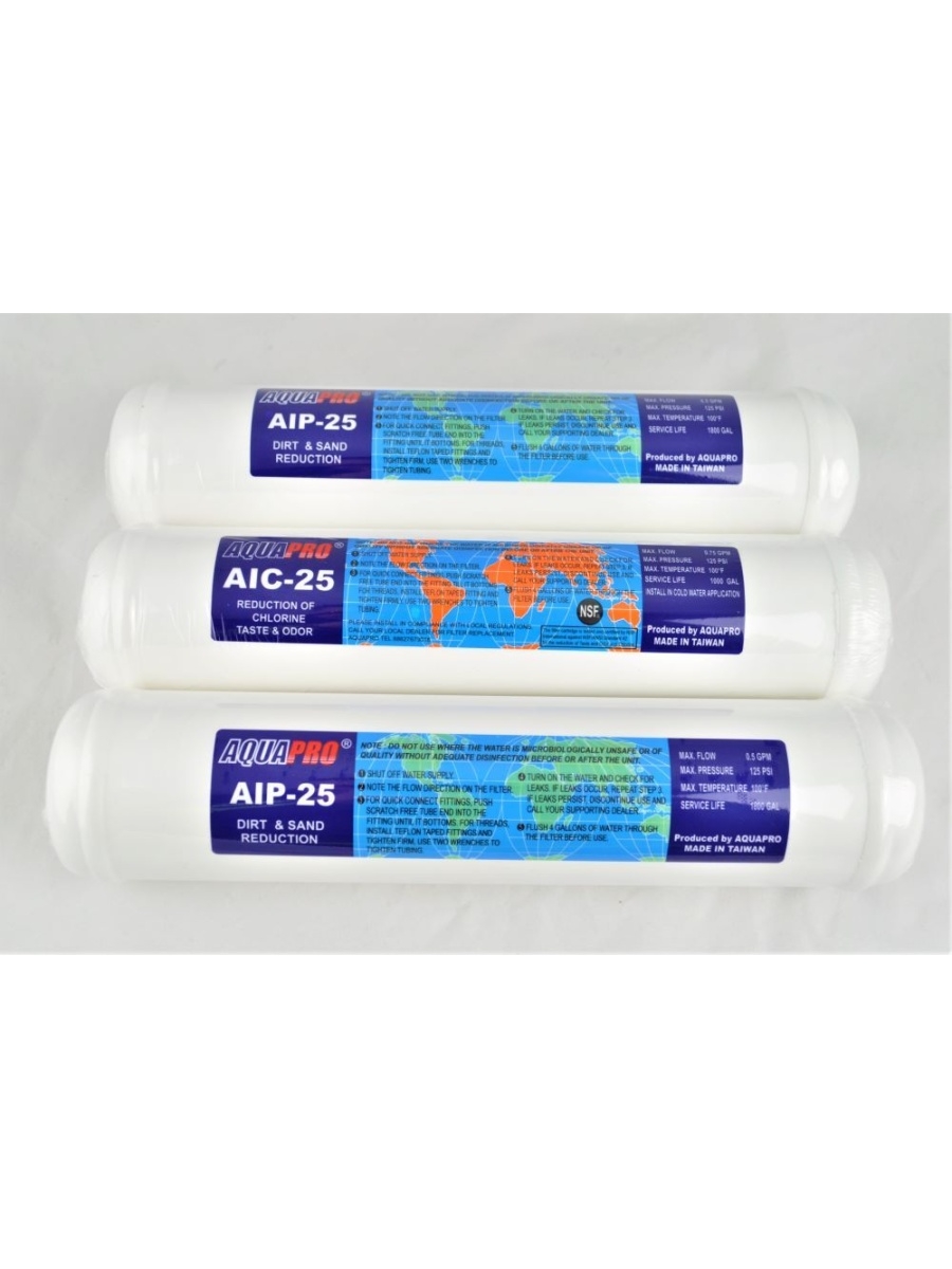 Полный набор AquaPro из 3-х картриджей, предназначен для замены исчерпывающих свой ресурс элементов, в системах обратного осмоса: Atoll А550,А560,А575А-575,А-575Е SailBoat,A-575 CMB-R3,Zepter Aqueena Pro. Является полным аналогом комплекта №104 Atoll. Модули изготовлены из высочайшего класса, экологически чистого пластика, который не выделяет в воду вредных веществ во время фильтрации. Компании AQUAPRO, является мировым лидером по водоочистке, а так-же производителем собственной продукции под собственным брендом. Все сменные фильтрующие элементы, входящие в данный набор, имеют стандартные типоразмеры 10 InLine и могут быть использованы для большинства фильтров других производителей имеющих подобную конструкцию.
