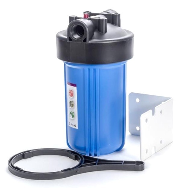 Магистральный фильтр для очистки холодной воды в квартирах и домах со средним водопотреблением. Может использоваться как для водопроводной, так и для воды из скважин. Фильтр поставляется вместе с картриджем из прессованного угля, который очищает воду от хлора, органических загрязнений, а также может задерживать механические загрязнения. Корпус фильтра изготовлен из прочного пластика. На крышке корпуса имеется кнопка сброса давления, что упрощает замену картриджей. Корпус совместим со всеми картриджами размером Big Blue 10″, то есть в дальнейшем Вы можете использовать не только угольный картридж, но и механический, умягчяющий, обезжелезивающий и т.д.