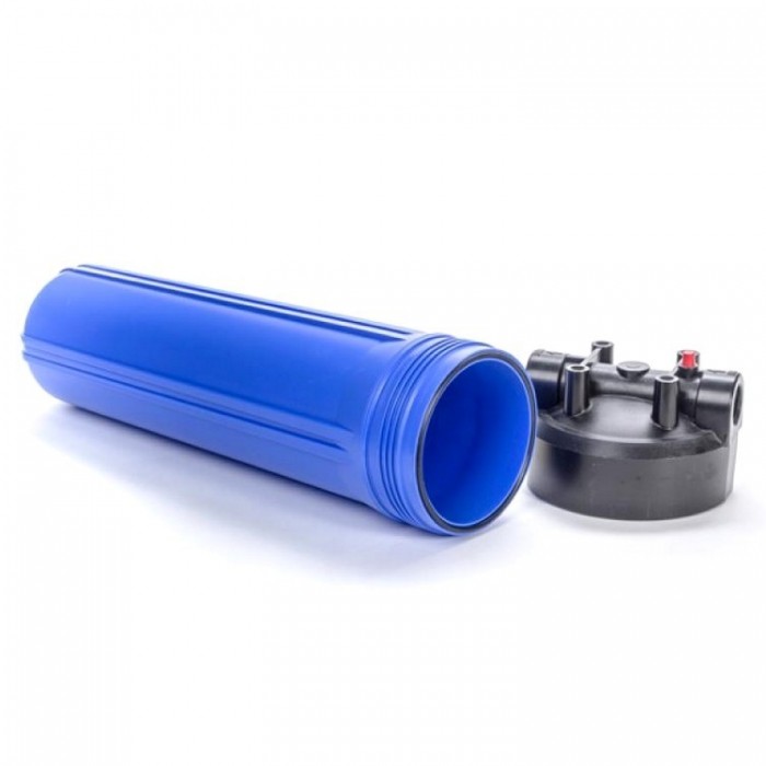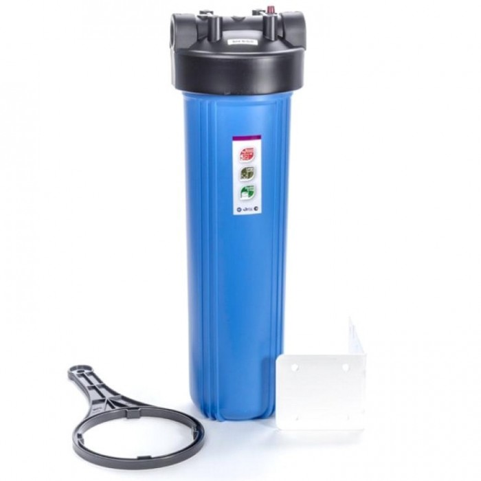 Магистральный фильтр для очистки холодной воды. Используется в квартирах и домах с высоким водопотреблением, а также в промышленных учреждениях. Может использоваться как для водопроводной, так и для воды из скважин. Фильтр поставляется вместе с картриджем из прессованного угля, который очищает воду от хлора, органических загрязнений, а также может задерживать механические загрязнения. Корпус фильтра Raifil изготовлен из прочного пластика. На крышке корпуса имеется кнопка сброса давления, что упрощает замену картриджей. Подключение 1 дюйм. Корпус Raifil совместим со всеми картриджами размером Big Blue 20″, то есть в дальнейшем Вы можете использовать не только угольный картридж, но и механический, умягчяющий, обезжелезивающий и т.д.