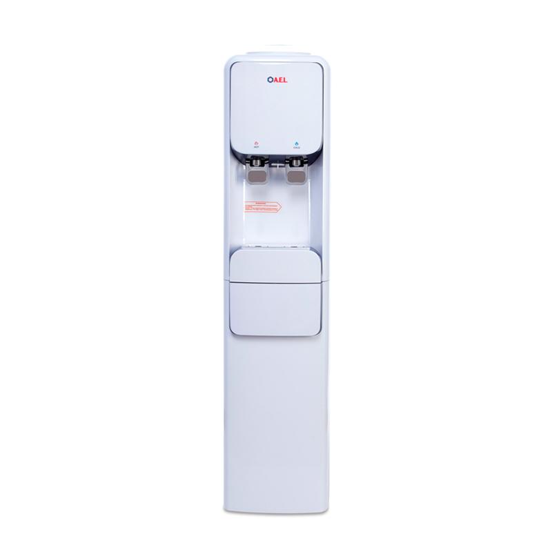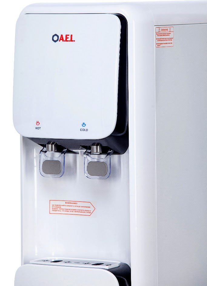 Новая модель смело занимает свое место в ряду элитных кулеров для требовательных клиентов. Высокий элегантный корпус современного солидного дизайна. Белый цвет ровного приятного оттенка. Данная модель хорошо впишется в строгий дизайн кабинета и офиса, а удобные краны нажим чашкой с защитой от случайного нажатия, расположеные на комфортной высоте для пользователя, дополняют образ.