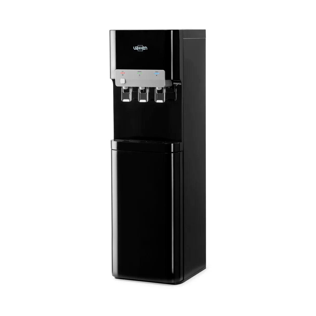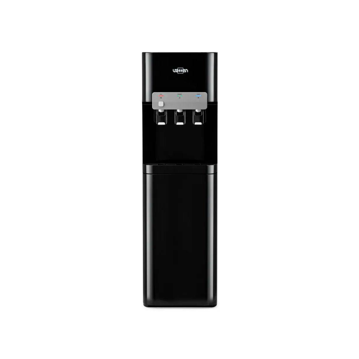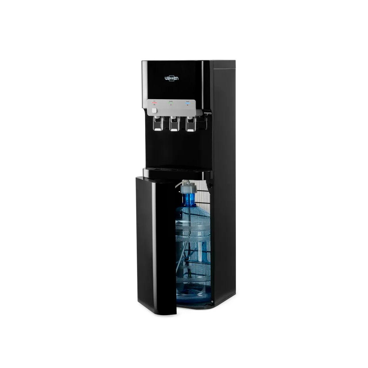 Данный кулер L07NK компрессорный, с нижним расположением бутыли. Три пушкрана для горячей, холодной, и для воды комнатной температуры. Есть блокировка крана горячей воды (защита от детей).