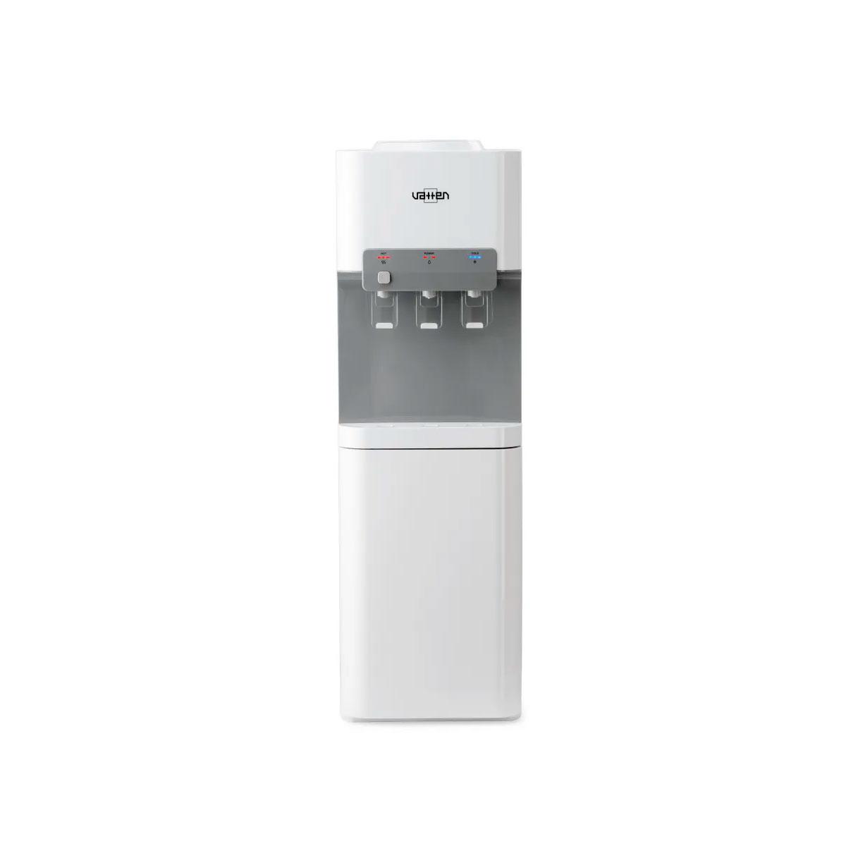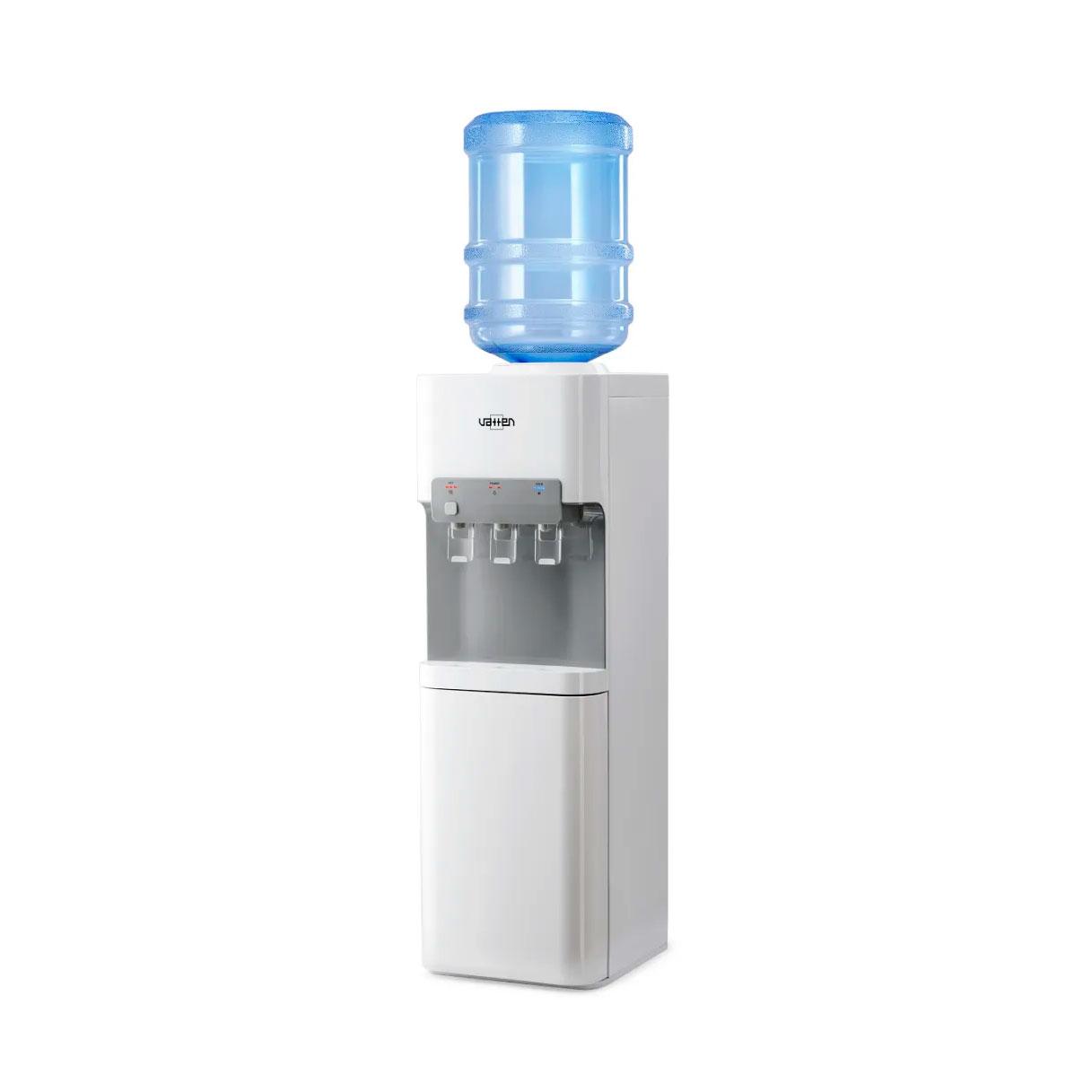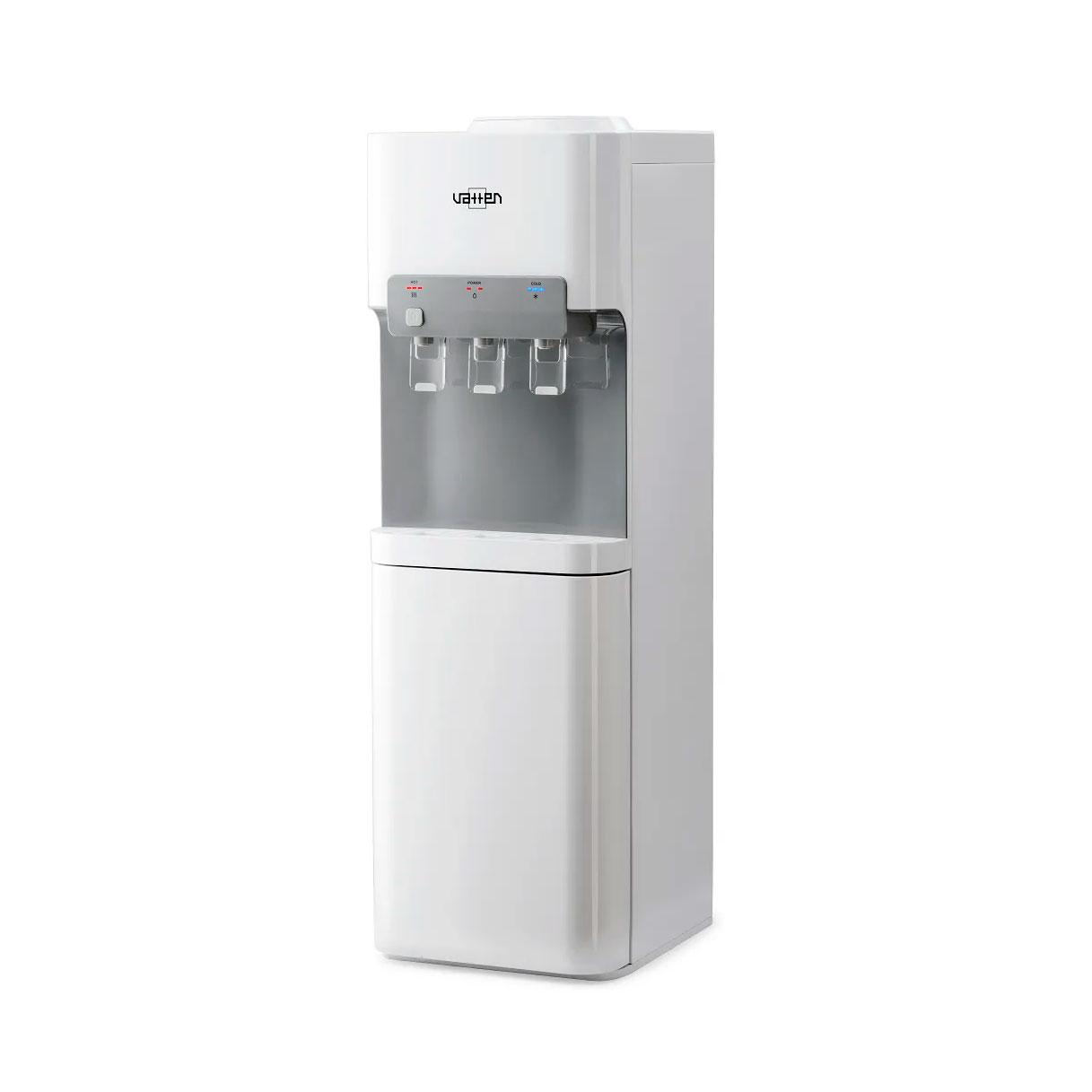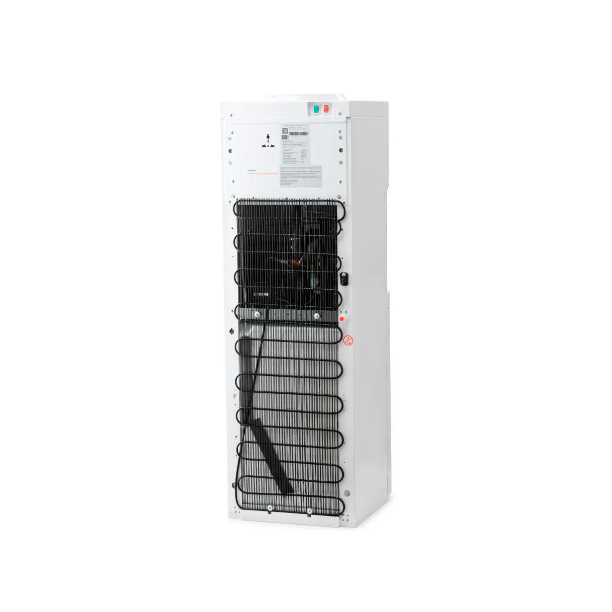 Данный кулер V11WKB компрессорный, с верхним расположением бутыли. Три пушкрана для горячей, холодной, и для воды комнатной температуры. Есть блокировка крана горячей воды (защита от детей). Есть холодильник.