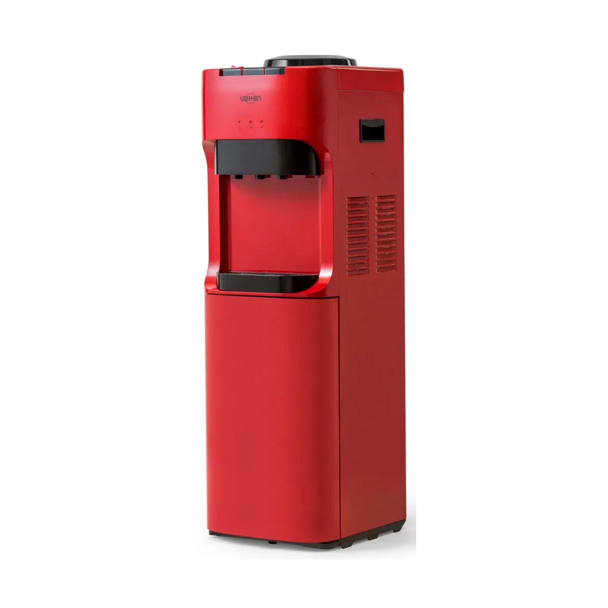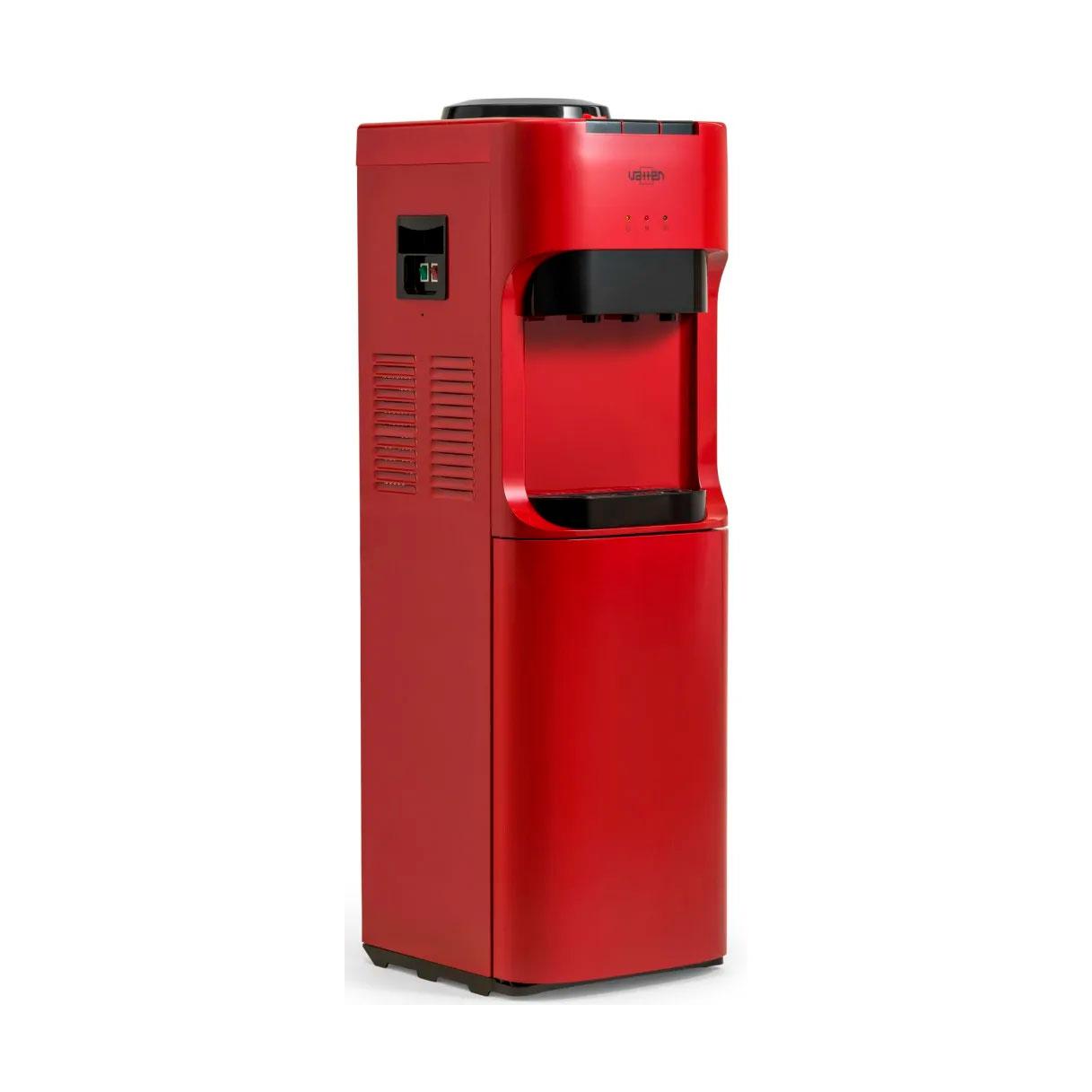 Напольный кулер для воды. С компрессорным охлаждением и с высокой производительностью нагрева воды — до 6 литров в час (мощность водонагревателя 650 Вт). Шкафчик — холодильник 18л. Высота стандартная — 928 мм. Для дома. Для офиса.