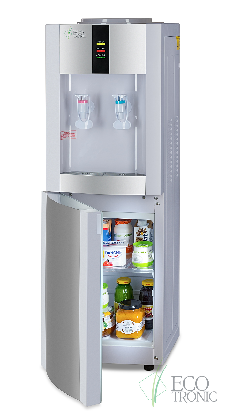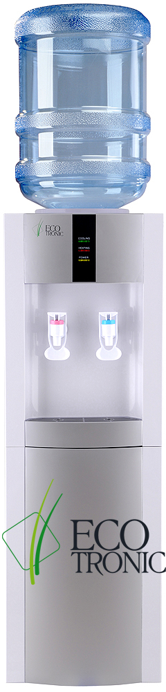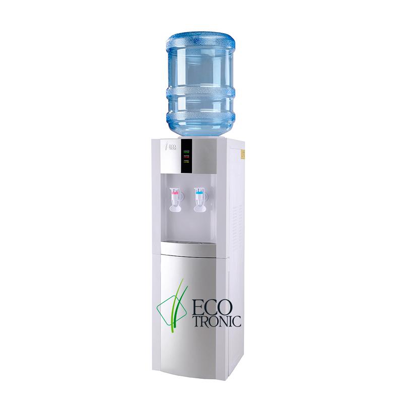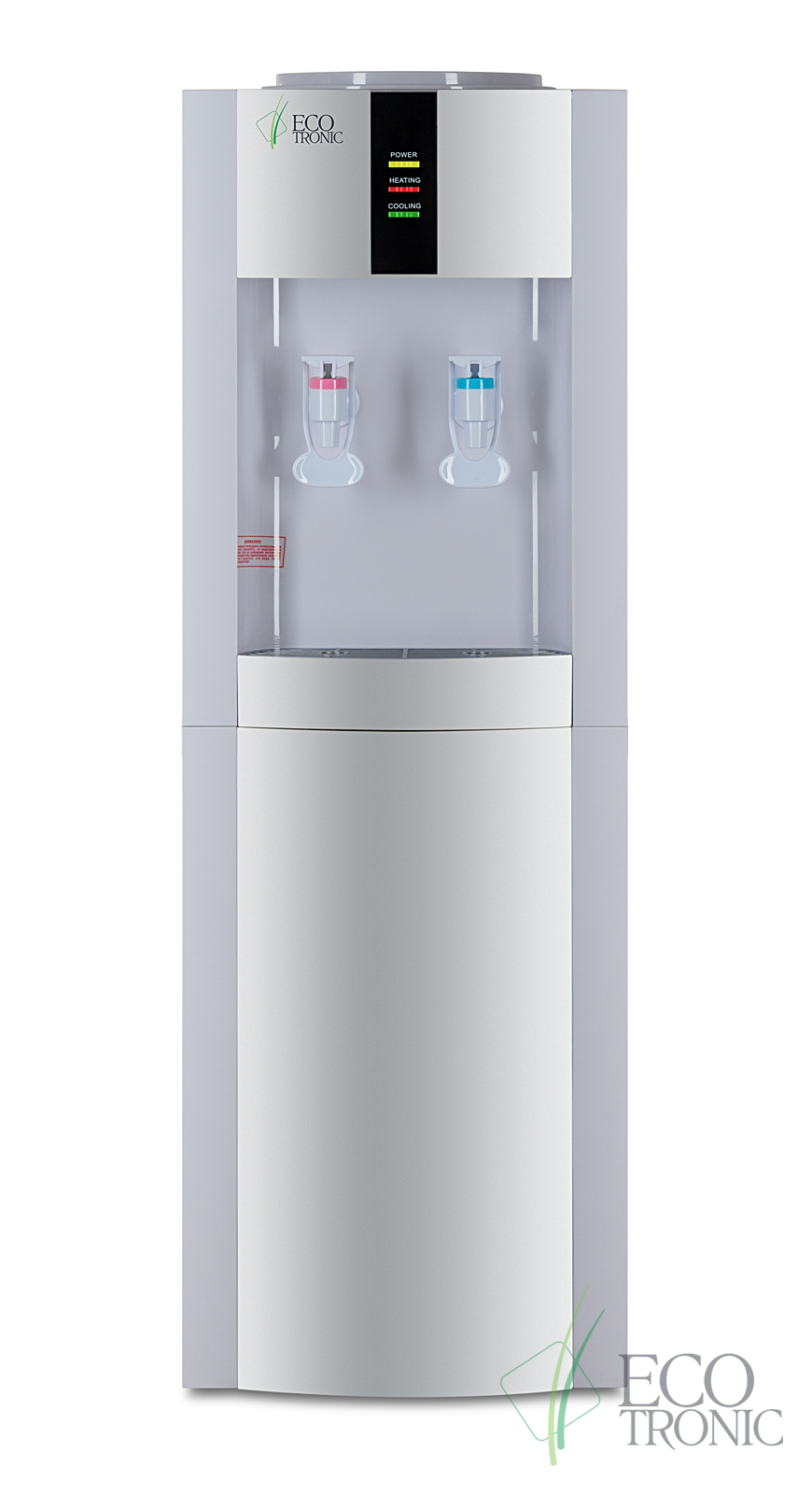 Кулер Ecotronic H1-LF White с холодильником. Напольный кулер с компрессорным охлаждением. Тип кранов подачи воды — «Нажим кружкой».