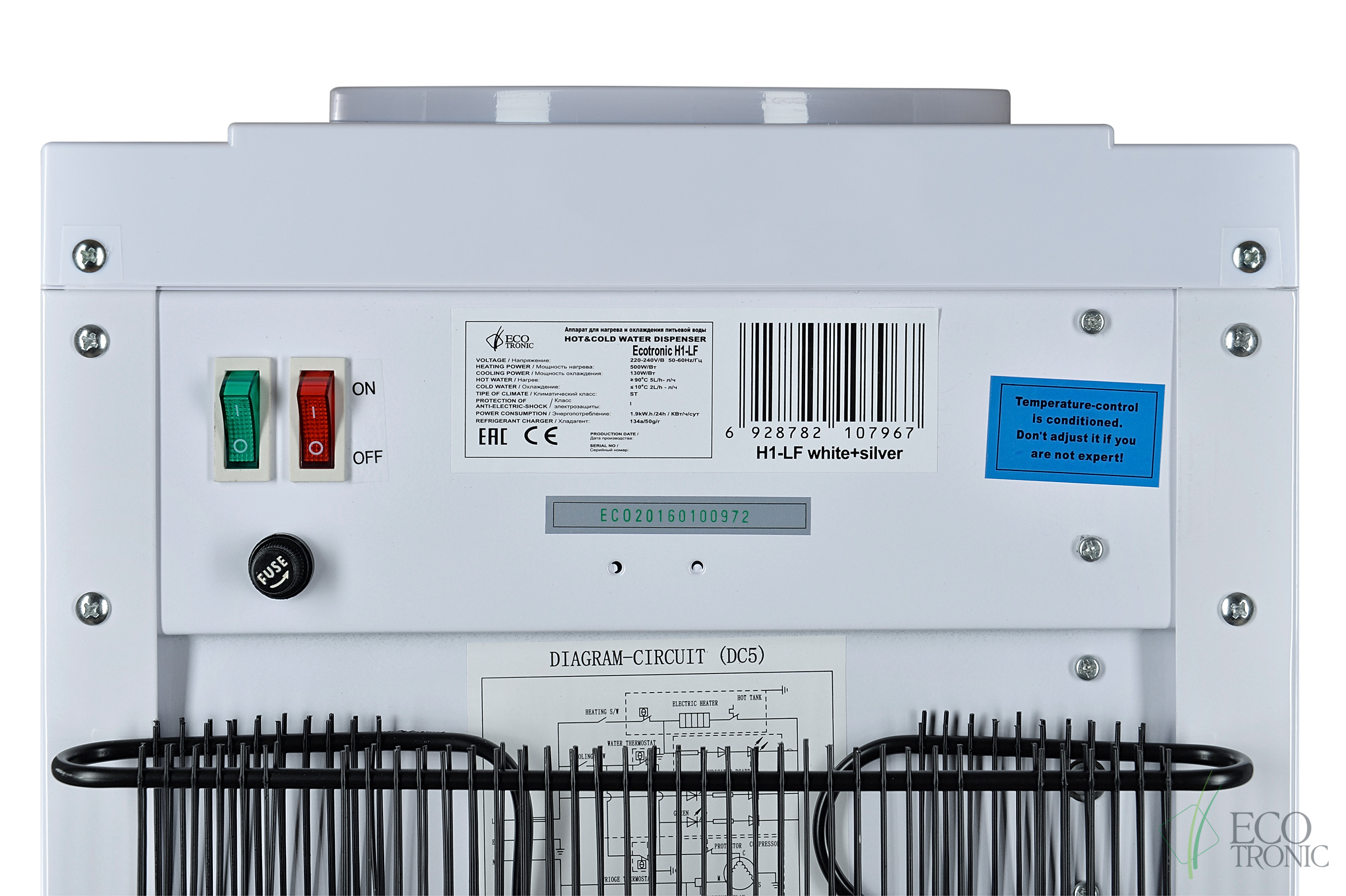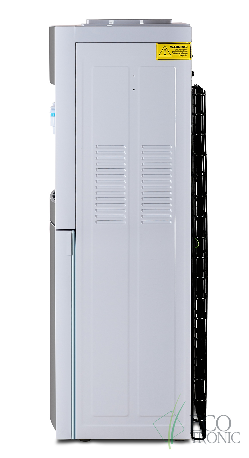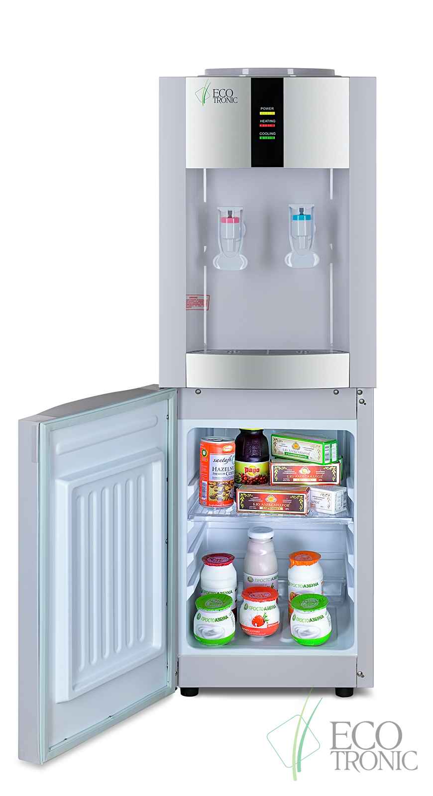 Кулер Ecotronic H1-LF White с холодильником. Напольный кулер с компрессорным охлаждением. Тип кранов подачи воды — «Нажим кружкой».