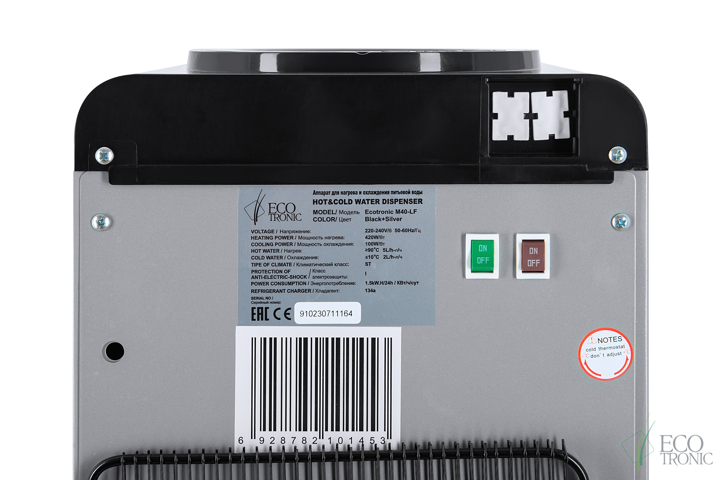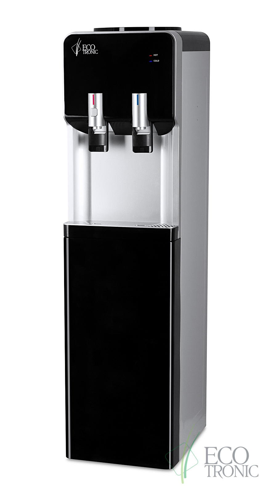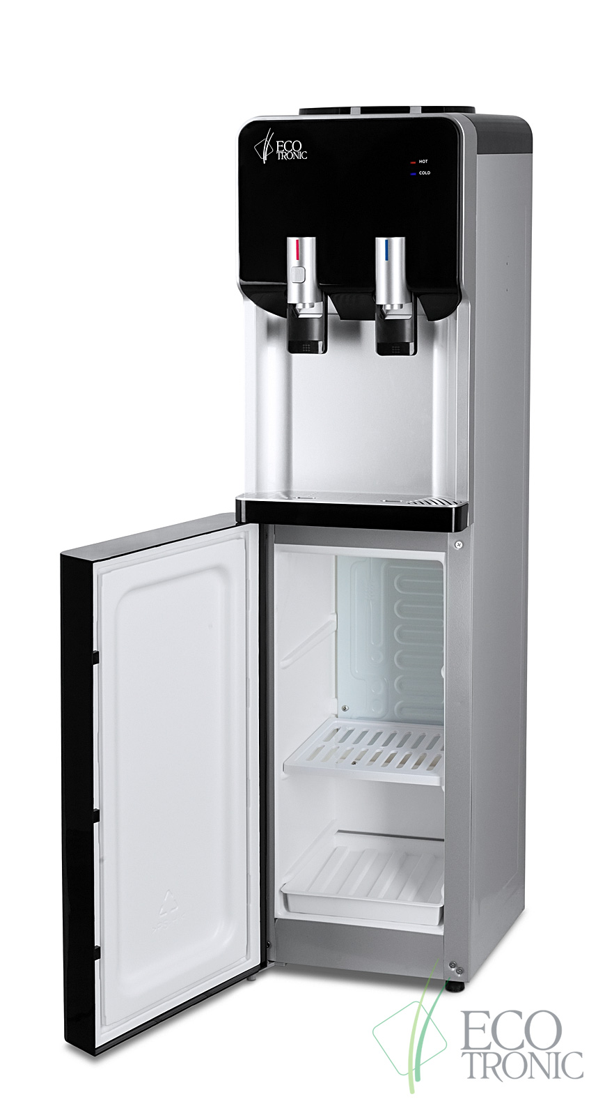 Кулер Ecotronic M40-LF с холодильником. Компрессорное охлаждение. Долговечный и практичный цельнотянутый бак холодной воды: поскольку нет сварных швов, меньше вероятность появления ржавчины со временем. Стабильную работу системы охлаждения воды и холодильника обеспечивает наличие второго термостата для холодильника.