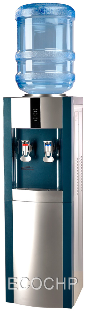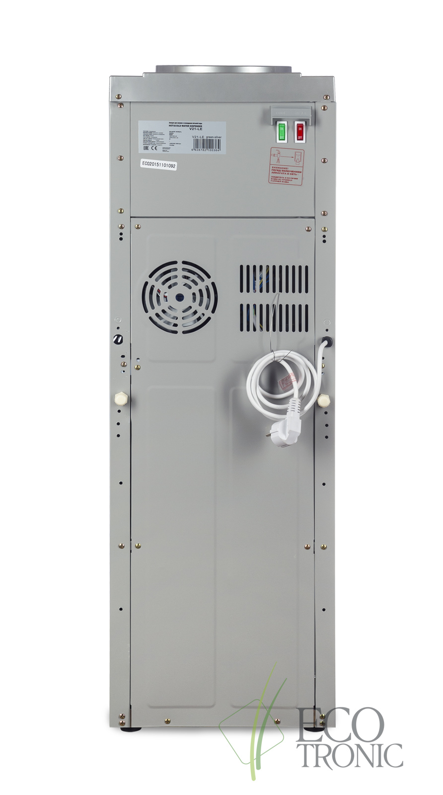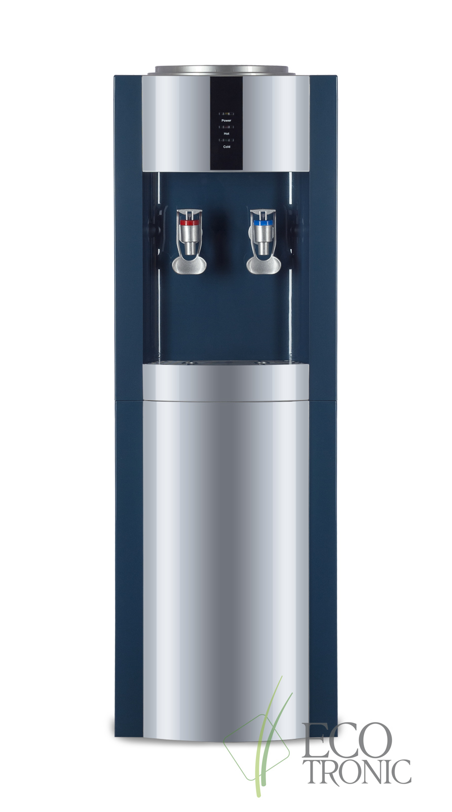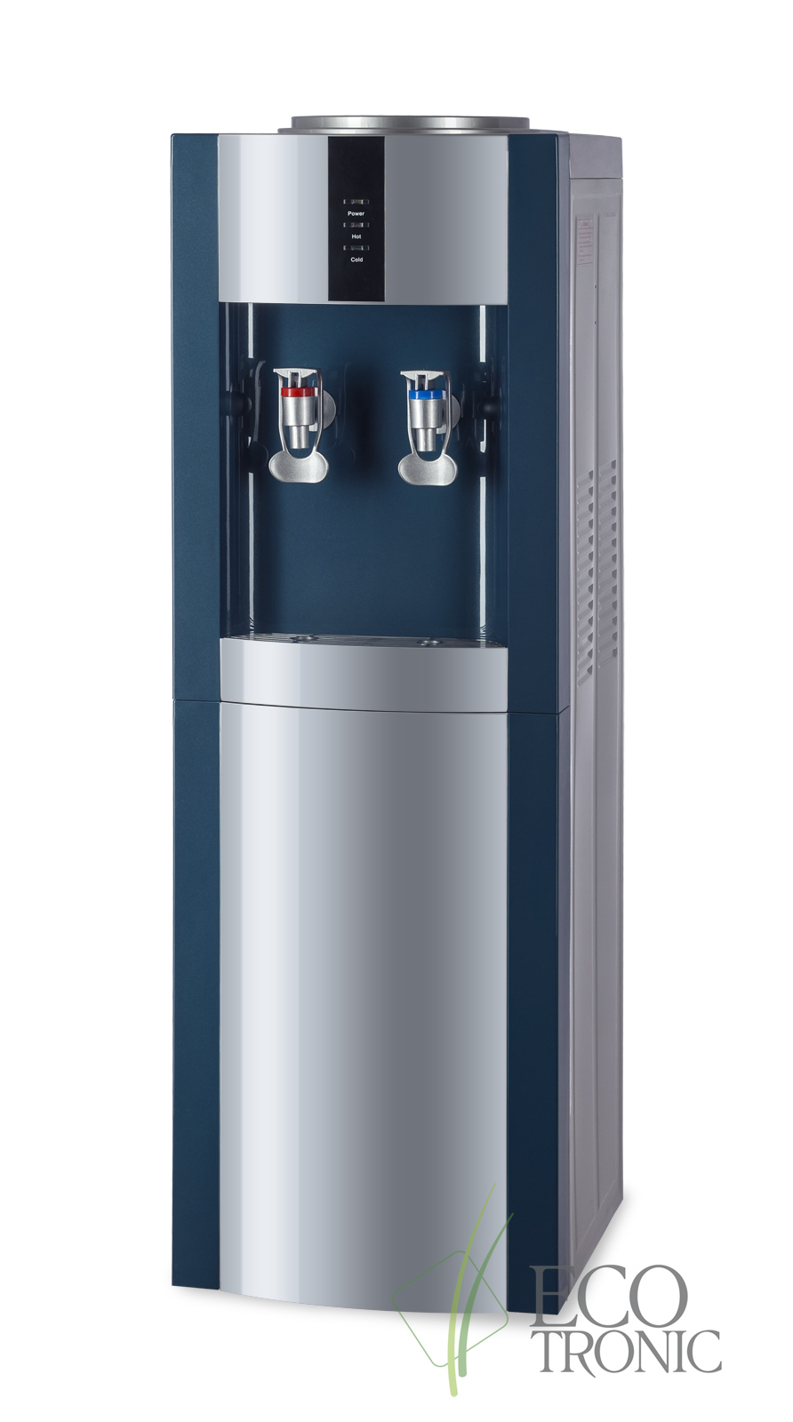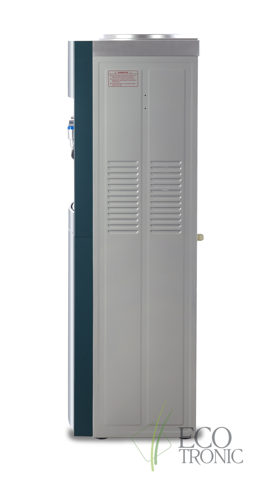 Кулер «Экочип» V21-L green. Бюджетный аналог классической модели Ecotronic Н1. Напольный кулер цвет «морская волна» с серебристой вставкой. Компрессорное охлаждение. Тип кранов подачи воды — «Нажим кружкой».