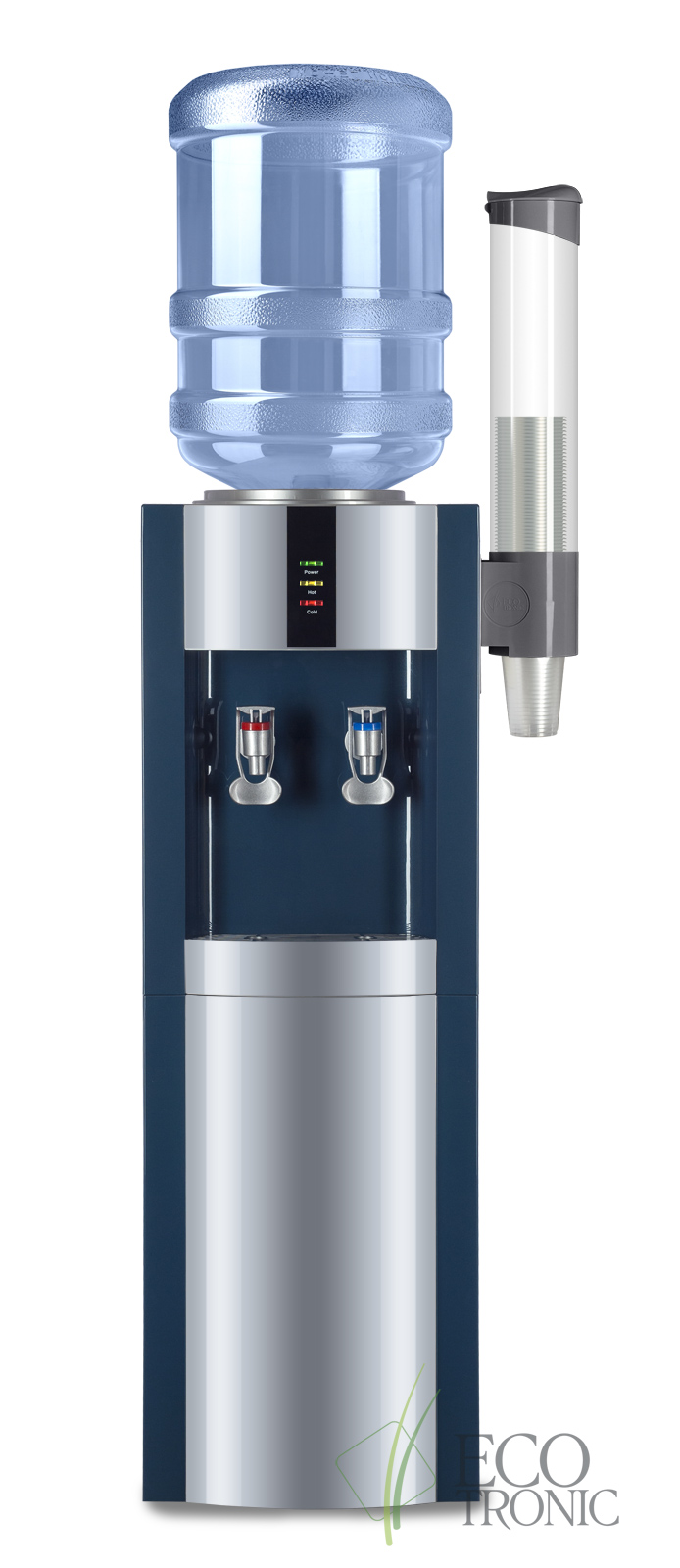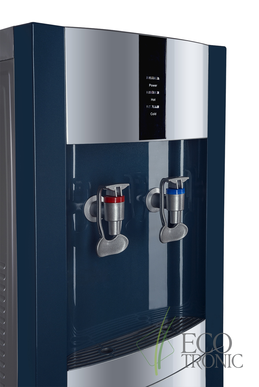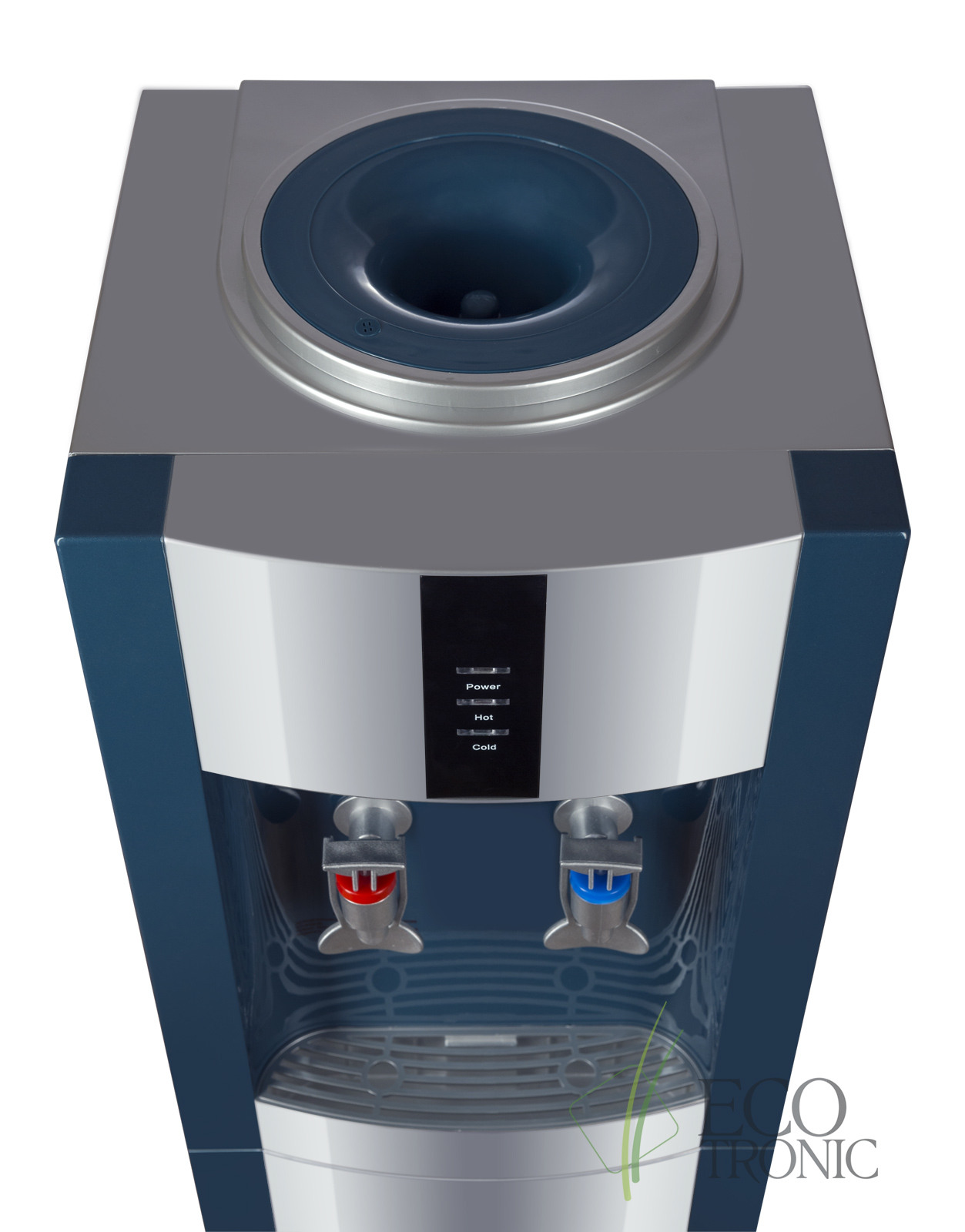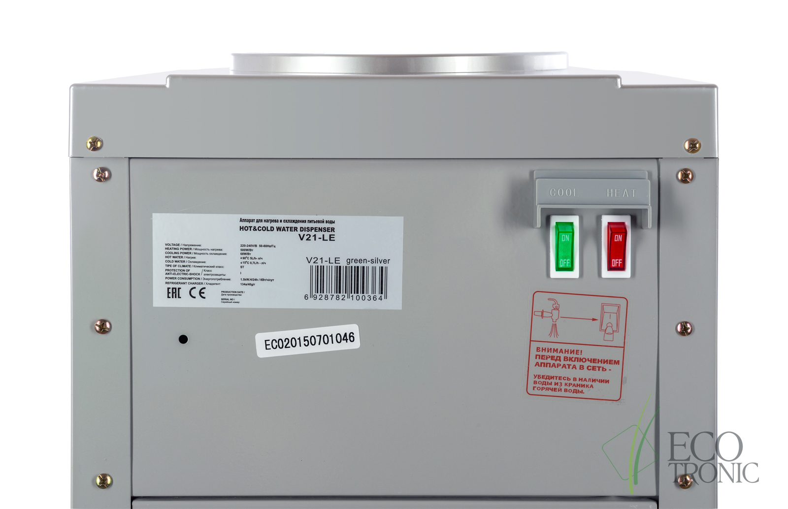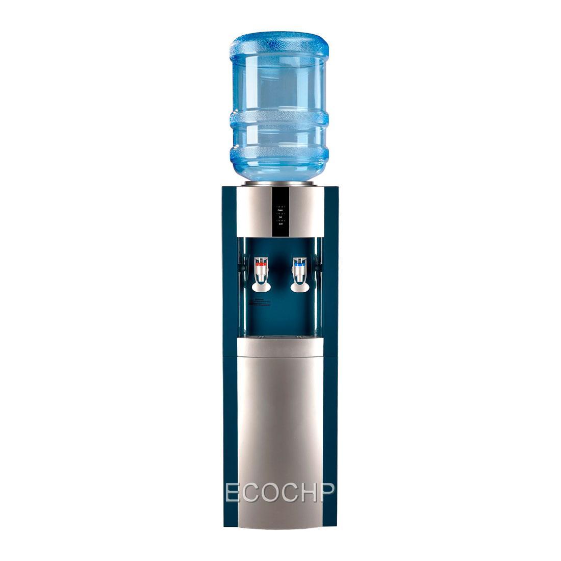 Кулер «Экочип» V21-L green. Бюджетный аналог классической модели Ecotronic Н1. Напольный кулер цвет «морская волна» с серебристой вставкой. Компрессорное охлаждение. Тип кранов подачи воды — «Нажим кружкой».