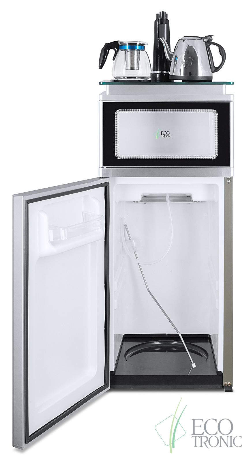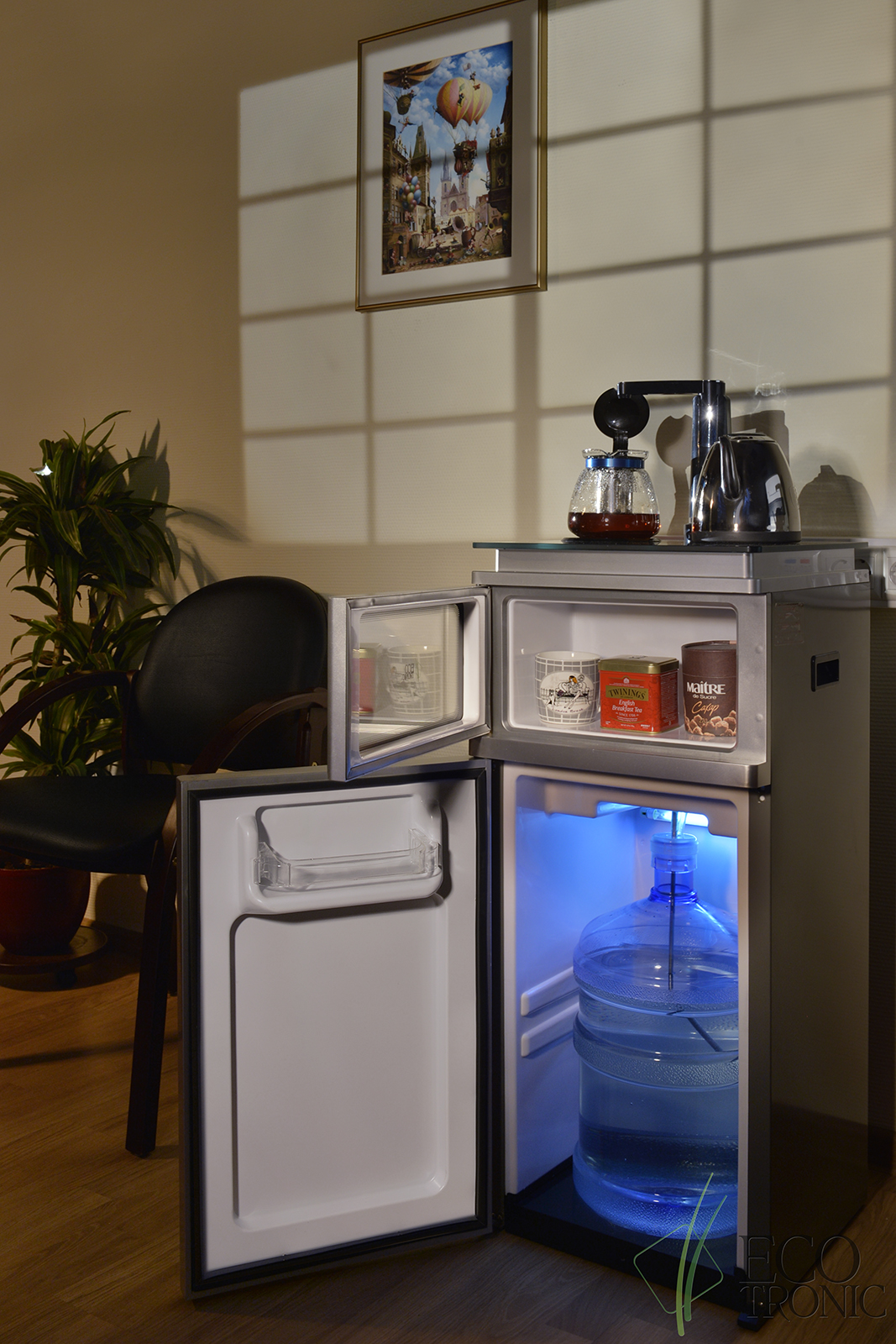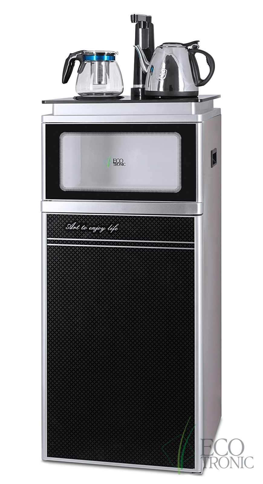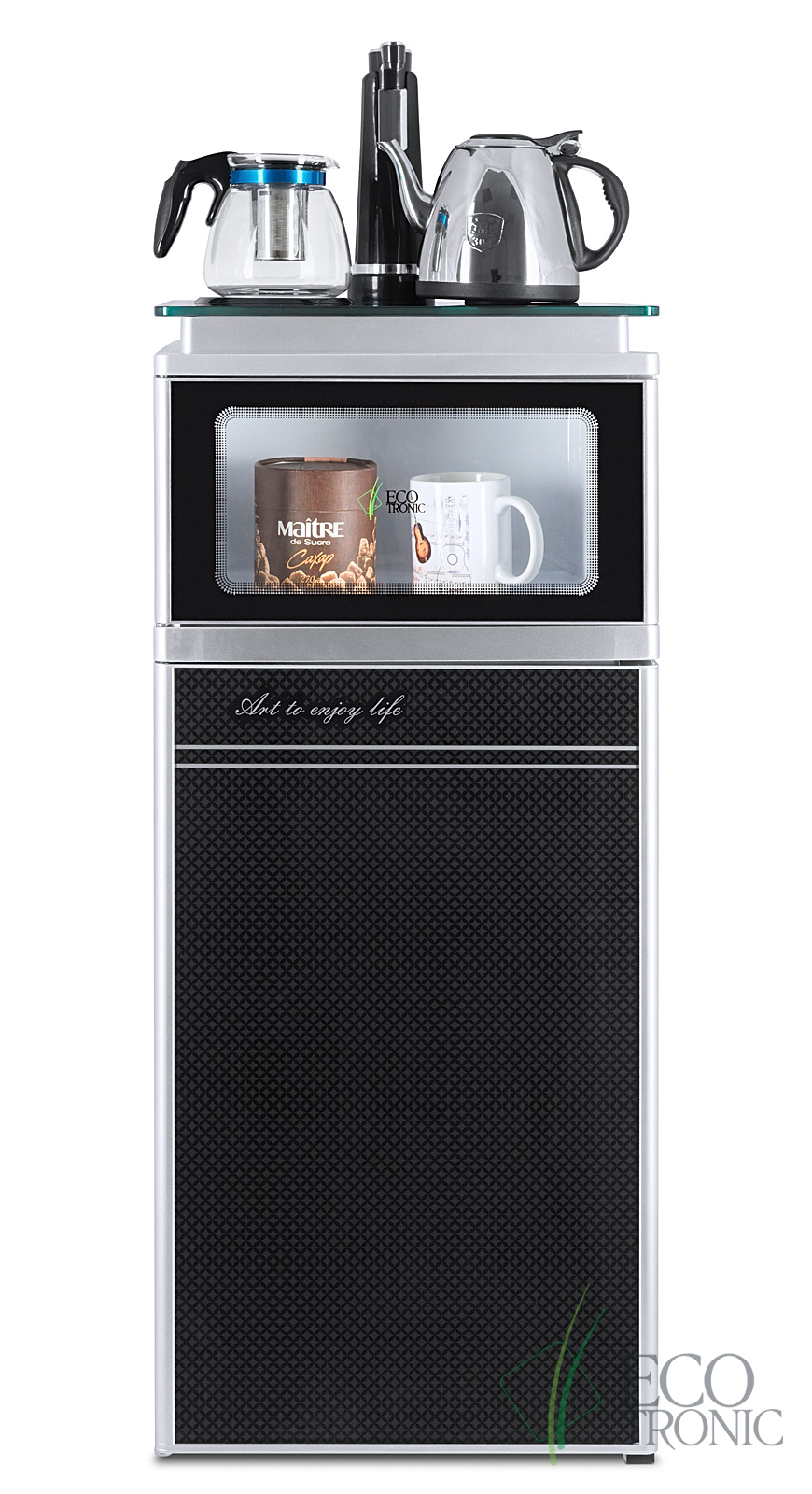 Напольный кулер с чайным столиком Ecotronic TB3-LE UV-это аппарат с нижней загрузкой бутыли, подача воды в котором осуществляется через кран сверху на столике. С функцией стерилизации воды UV-лампой.