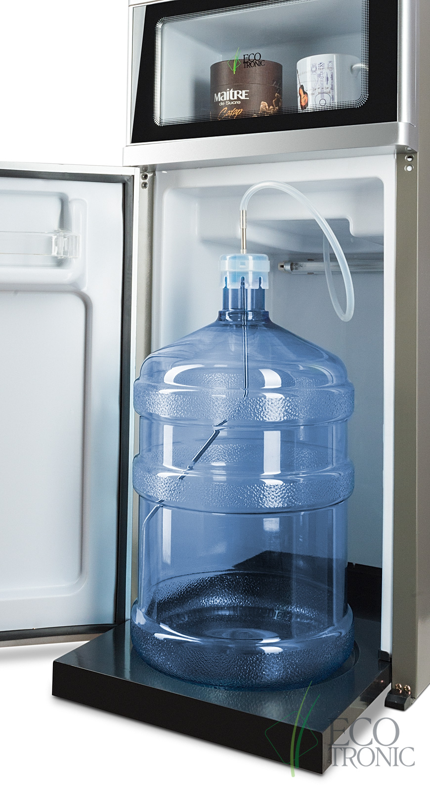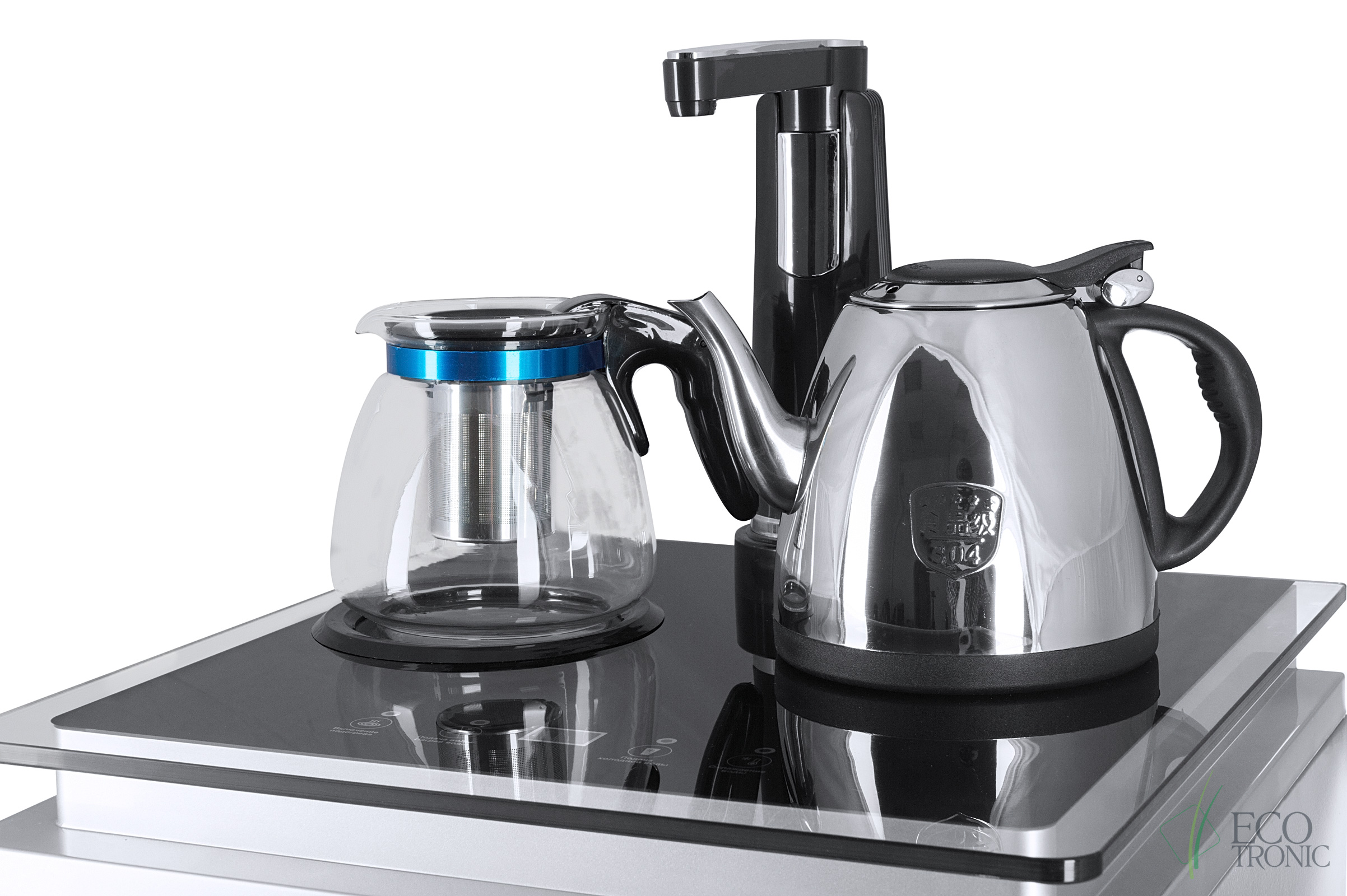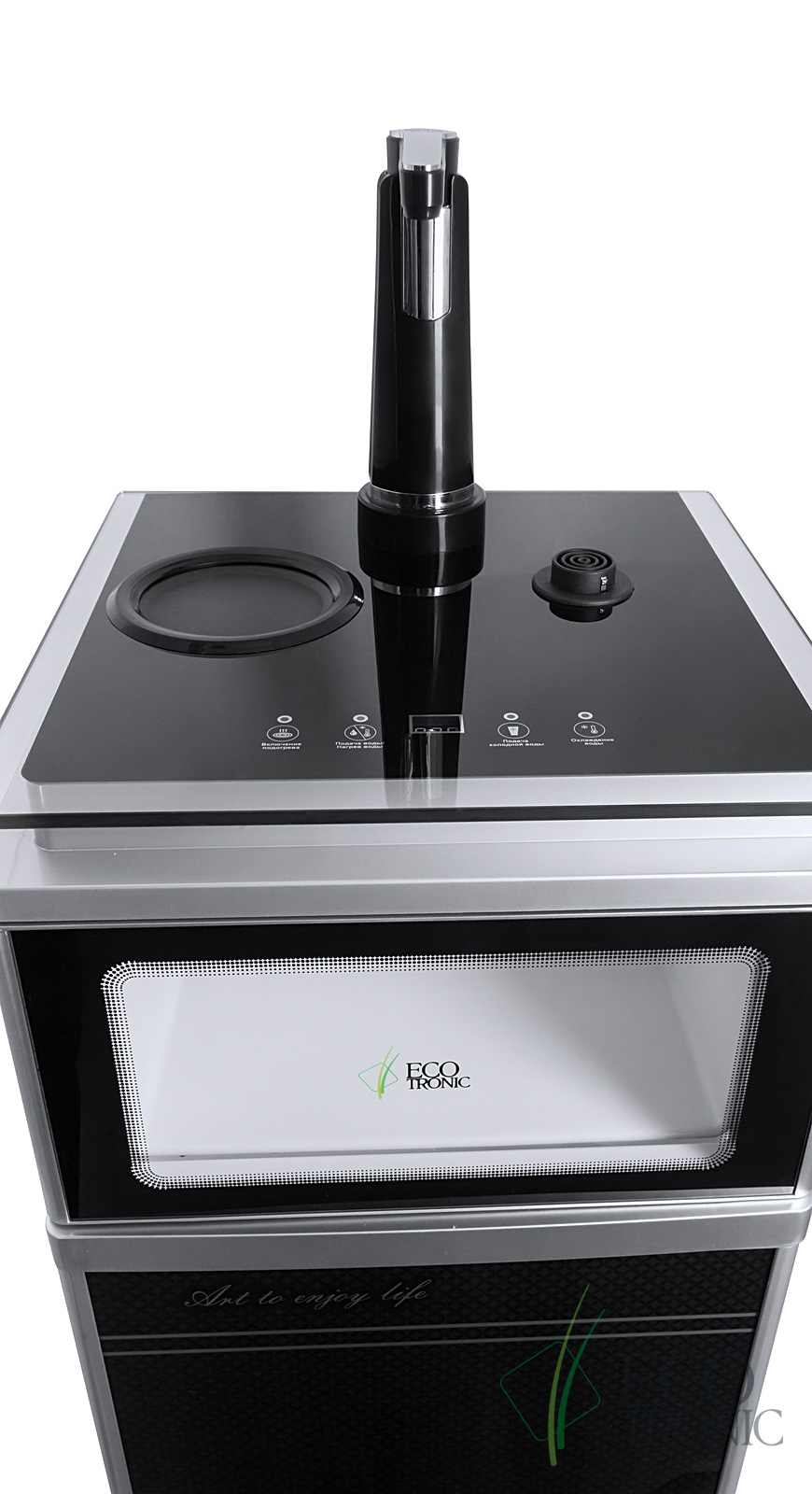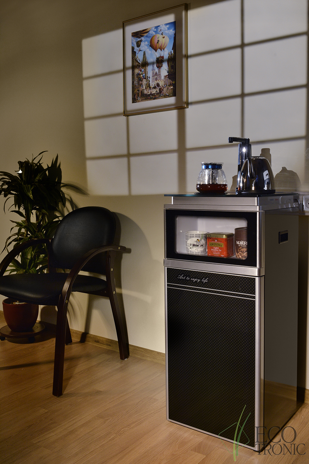 Напольный кулер с чайным столиком Ecotronic TB3-LE UV-это аппарат с нижней загрузкой бутыли, подача воды в котором осуществляется через кран сверху на столике. С функцией стерилизации воды UV-лампой.