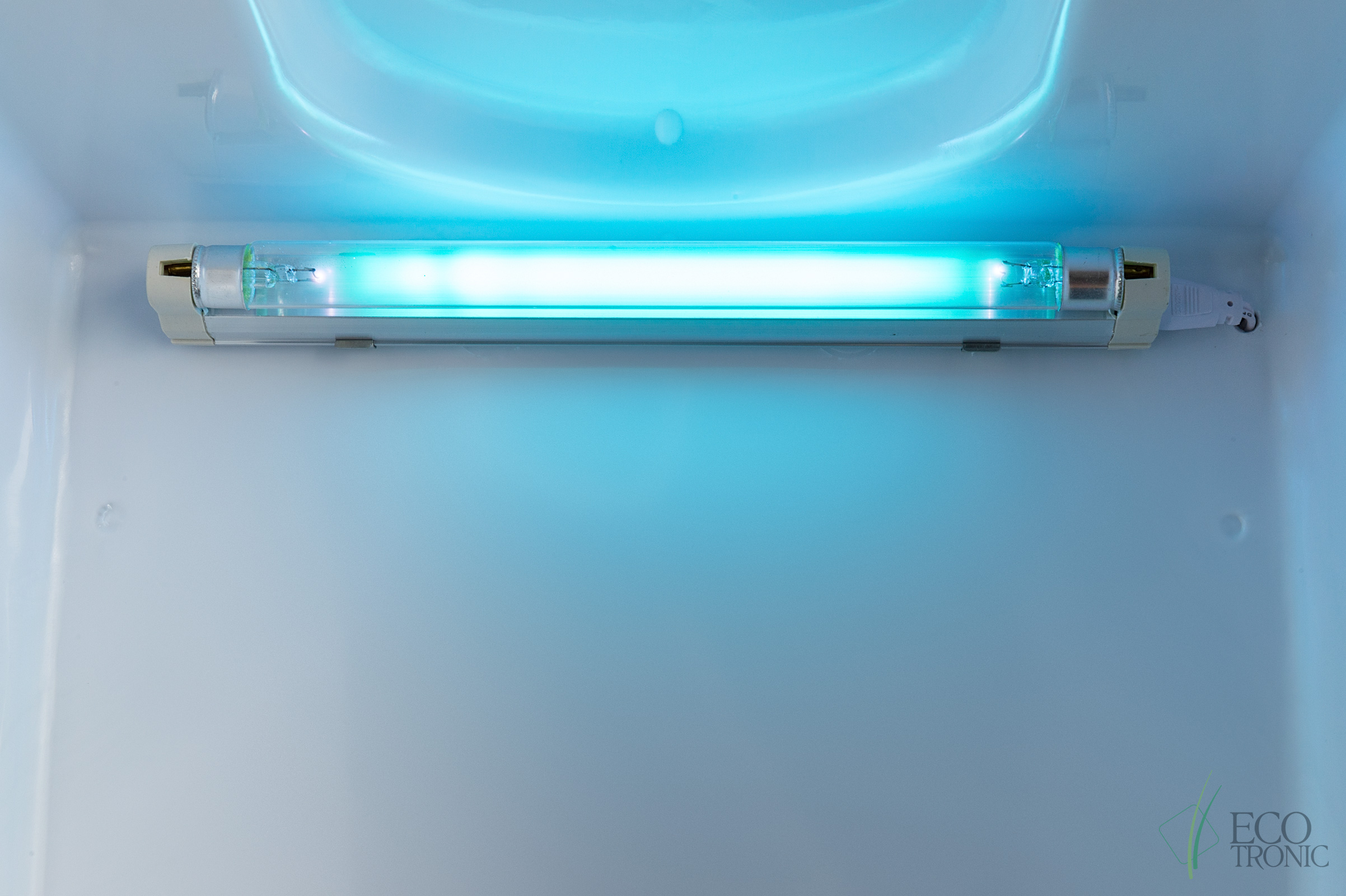 Ультрафиолетовая озонирующая лампа при необходимости может быть заменена. Совместное воздействие ультрафиолета и озона убивает все штаммы бактерий, грибки, плесень, вирусы, устраняет неприятные запахи.