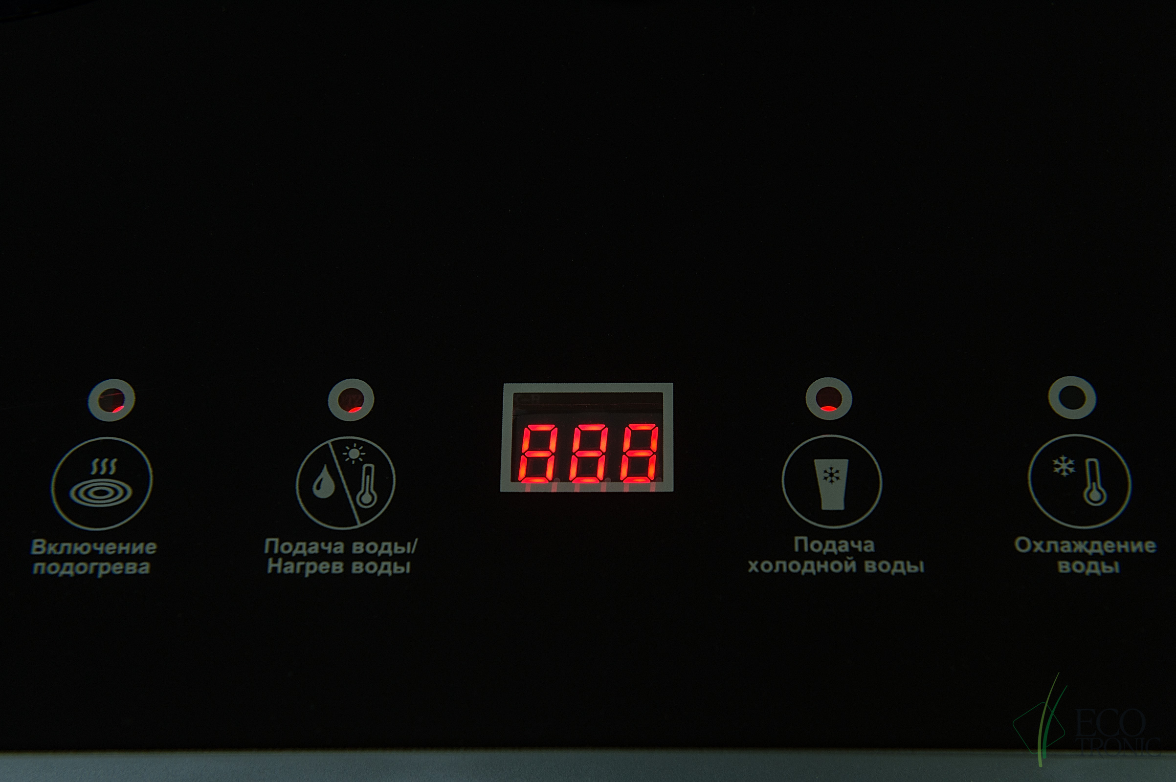 Отдельной кнопкой на панели включается охлаждение воды, после чего поддерживается автоматически, до принудительного отключения. Холодная вода подается из крана по нажатию кнопки «подача холодной воды».