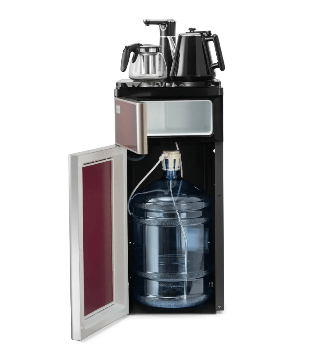 Кулер оснащен двумя чайниками: для заварки чая (объемом 0,5 л) и для кипячения воды (0,7 л). Чайник для заварки имеет свое ложе для подогрева и поддержания температуры. В чайнике для кипячения вода начинает нагреваться после двойного нажатия на кнопку горячей воды. Нагрев отключается при достижении 100 °С. Встроенный дисплей отображает текущую температуру воды. Если вода в чайнике остыла, можно включить нагрев соответствующей кнопкой.