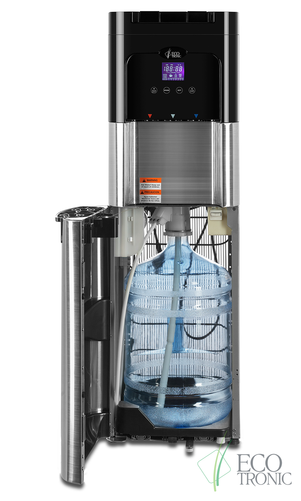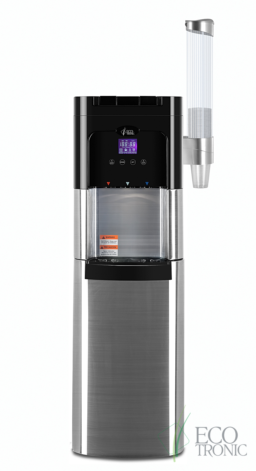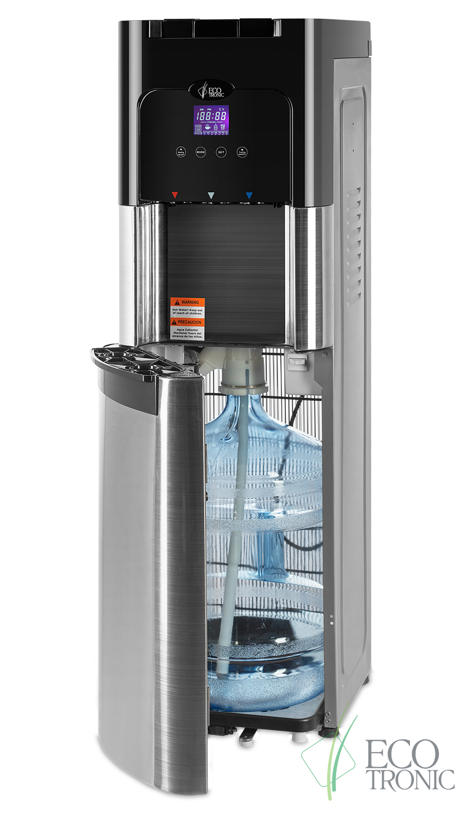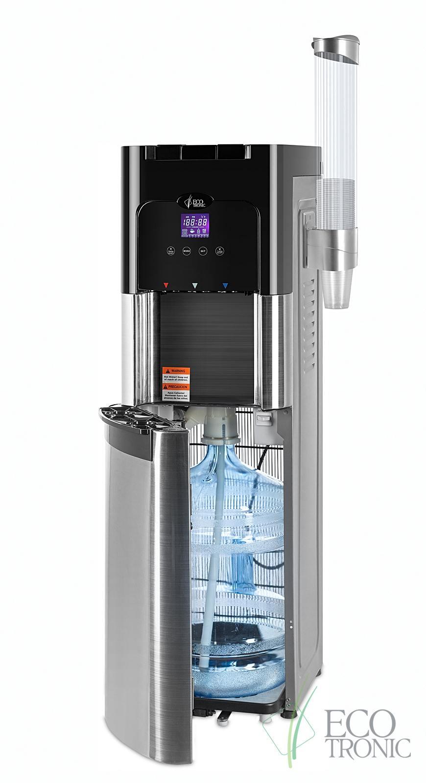 Напольный кулер с нижней загрузкой бутыли, лицевые панели из нержавеющей стали. Монитор с управлением температурой горячей и холодной воды и временем включенияотключения аппарата. Новые модели C11-LXPM поставляются с водяной помпой. Бак гв 2,2 литра с донным нагревателем. Производительность по охлаждению воды, 4л/ч. Пр-во: КанадаКНР.