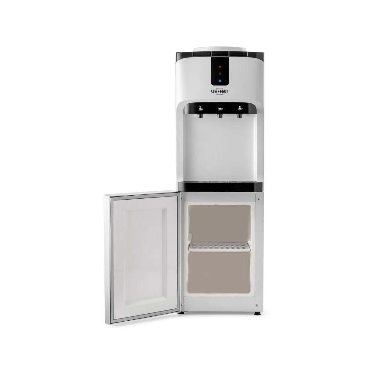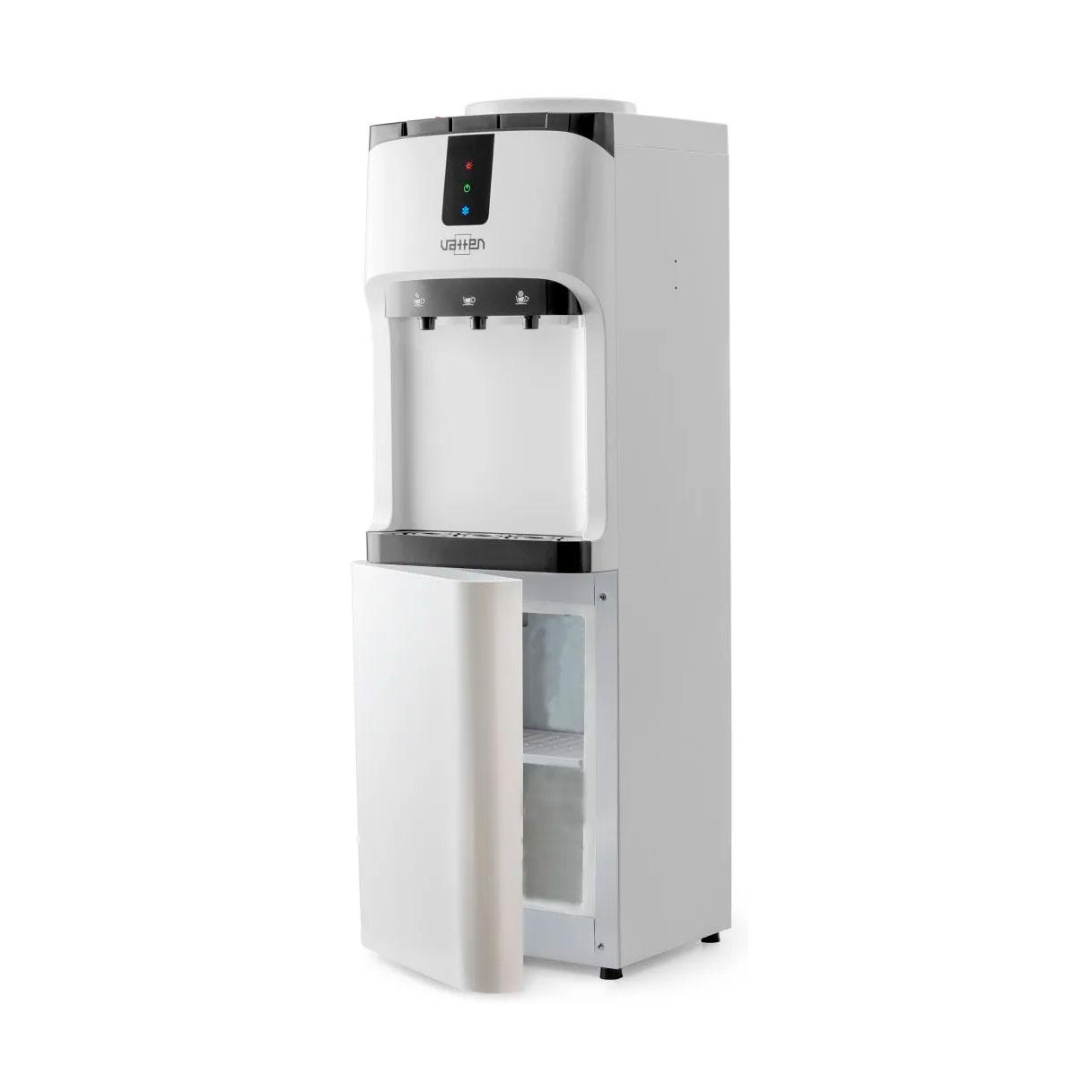 Электронное охлаждение и нагрев. Раздает воду горячей, холодной и комнатной температуры. Имеет блокиратор клавиши горячей воды («защита от детей»). Управление подачей воды из крана с помощью кнопки.