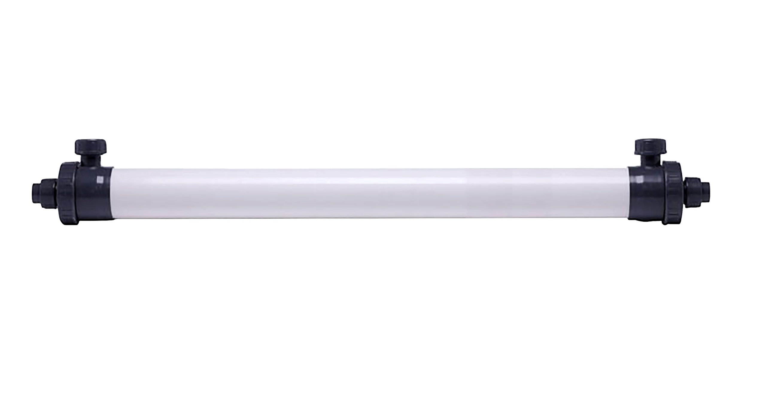 Модуль ультрафильтрации Raifil UF-10R (4050 d90*1164) представляет собой цельный корпус с двумя боковыми и двумя торцевыми выходами, внутри которого находятся волокна фильтрующего материала. Процесс ультрафильтрации представляет собой очистку воды за счет ее прохождения через фильтрующий материал при разном давлении на входе и на выходе.