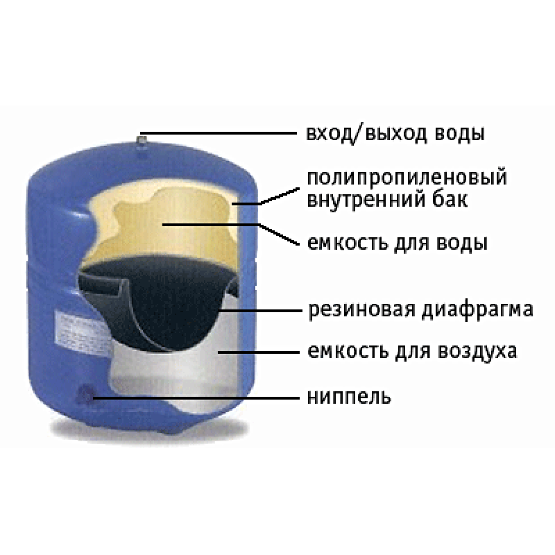 Бак AquaPro A2 имеет внутри постоянное давление, что позволяет ему полностью опустошаться от воды. Фактический объем бака отличается от номинального из-за специфики его внутреннего устройства – фактический объем бака на 50-75% меньше номинального.