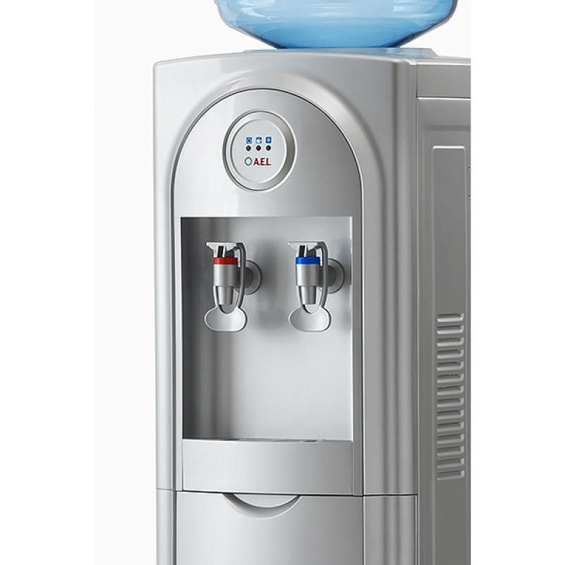 Кулер для воды со шкафчиком напольный LC-AEL-123C SILVER. Компрессорное охлаждение (6-8 градусов) и шкафчиком для хранения объемом 16 л. (≅240х180х320 мм). Шкафчик не охлаждается, обычно там хранят: чай, кофе, сахар. Цвет – серебро. Краны — «Нажим кружкой». Сзади есть два тумблера, которые отключают холодную и горячую воду.
