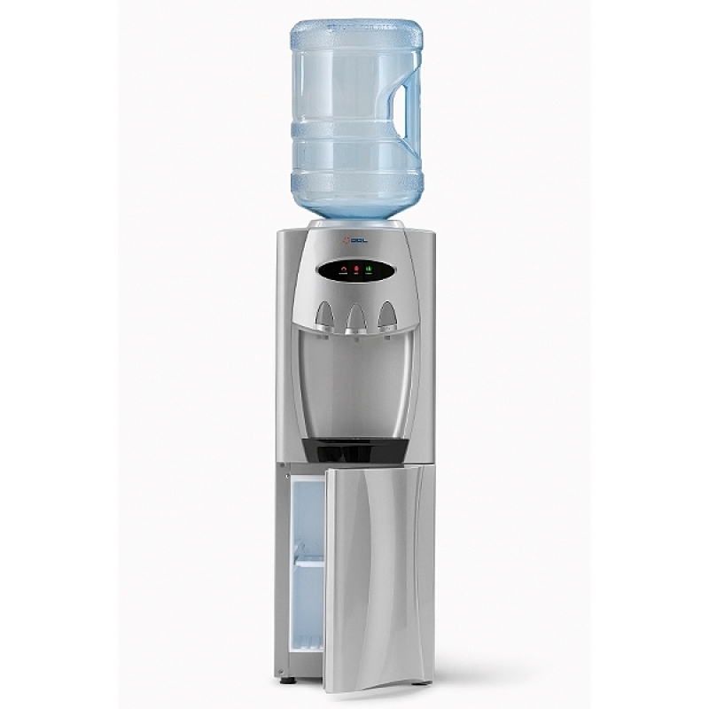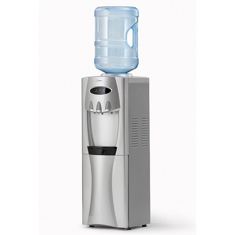 Кулер для воды с холодильником напольный LC-AEL-228С. Кулер с компрессорным охлаждением (6-8 градусов) и шкафчиком, объемом 16 л. (≅240х210х330 мм). Шкафчик не охлаждается, обычно там хранят: чай, кофе, сахар. Позволяет налить горячую, охлажденную и прохладную воду. Легкий ход клавиш, спокойный современный дизайн. Цвет – серебро. Сзади есть два тумблера, которые отключают холодную и горячую воду.