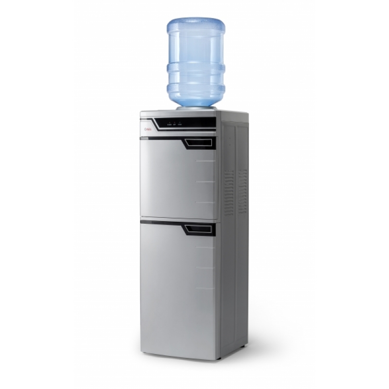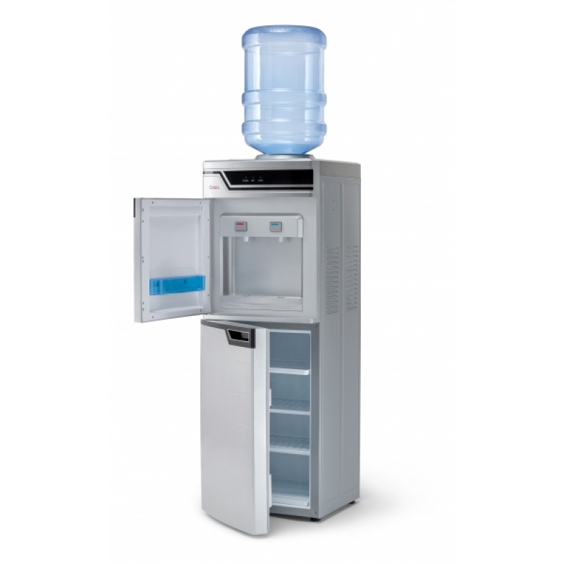 Кулер для воды с холодильником напольный LC-AEL-301B. Компрессорное охлаждение (6-8 градусов). Цвет – серебро. Краны-клавиши закрыты дверцей. Шкаф-холодильник, объемом на 50 литров (≅300х310х530 мм), с легкостью может удовлетворить потребности владельца аппарата в офисе или дома в холодной воде или хранении продуктов.