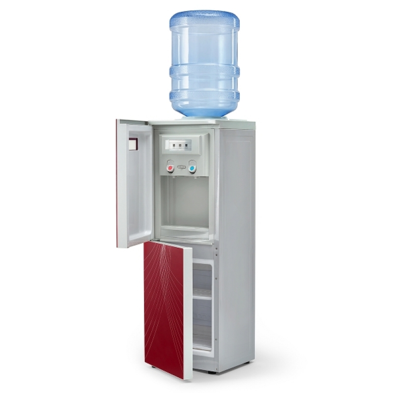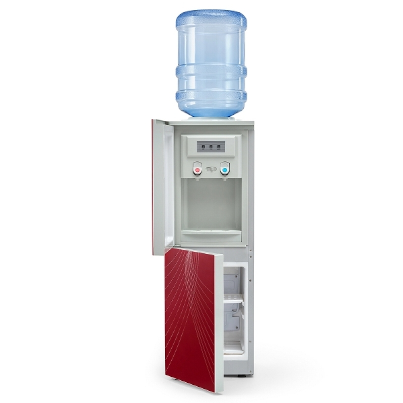 Кулер для воды с холодильником напольный LC-AEL-602B RED. Компрессорное охлаждение (6-8 градусов). C холодильником на 12 литров (≅230х160х320 мм). Дверца, закрывающая область краников-клавиш. Клавиша горячей воды с защитой. Цвет: бордовый с декоративной вставкой «лебеди».