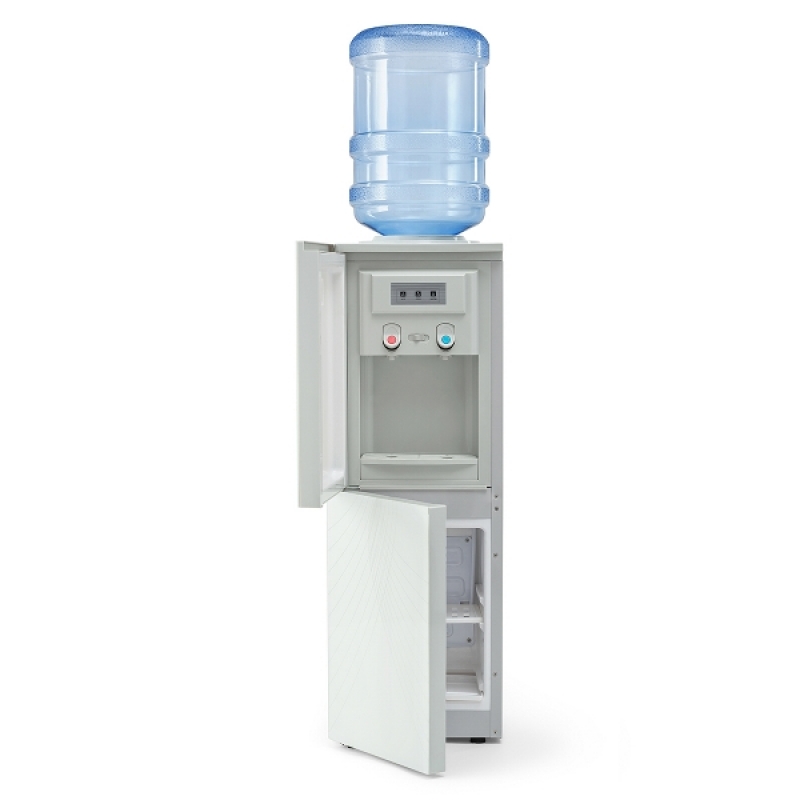 Кулер для воды с холодильником напольный LC-AEL-602B WHITE. Компрессорное охлаждение (6-8 градусов). C холодильником на 12 литров (≅230х160х320 мм). Дверца, закрывающая область краников-клавиш. Клавиша горячей воды с защитой. Цвет: белый с декоративной вставкой «лебеди».