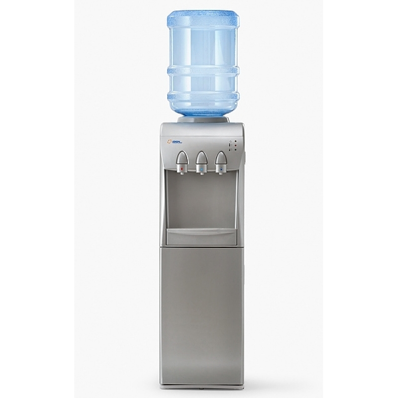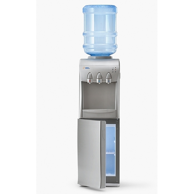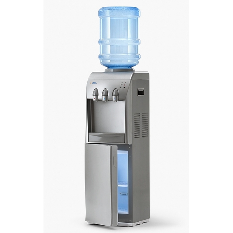 Кулер для воды с холодильником напольный MYL 31 S-В SILVER. Кулер с компрессорным охлаждением (6-8 градусов) и холодильником, объемом 20 л. (≅240х210х360 мм). Цвет – белый. Три крана кнопочного типа, позволяет налить горячую, холодную и прохладную воду. Современная и стильная модель. Сзади есть два тумблера, которые отключают холодную и горячую воду.
