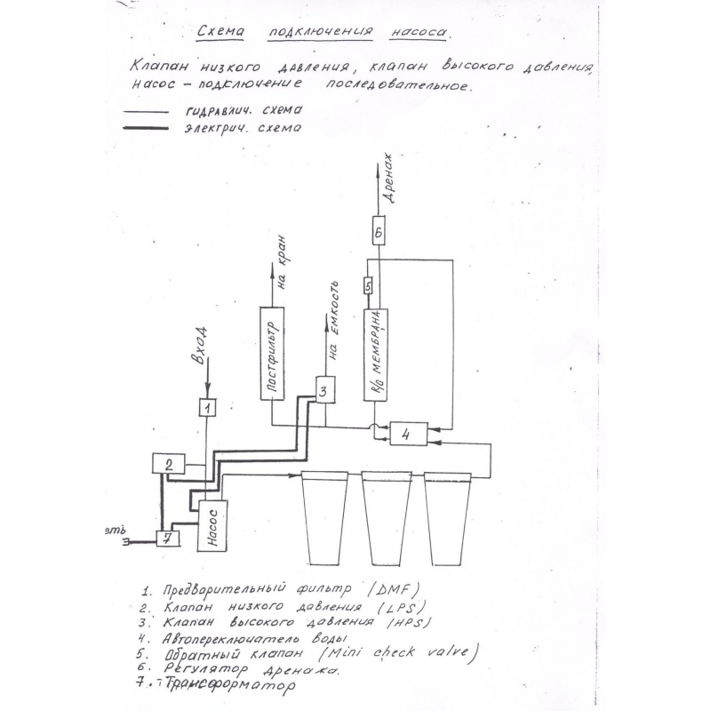 Применяется для установки в домах, где давление водопроводной сети ниже 3 атм. (районные центры, верхние этажи высотных домов в городе) или где давление периодически колеблется и система обратного осмоса работает нестабильно.