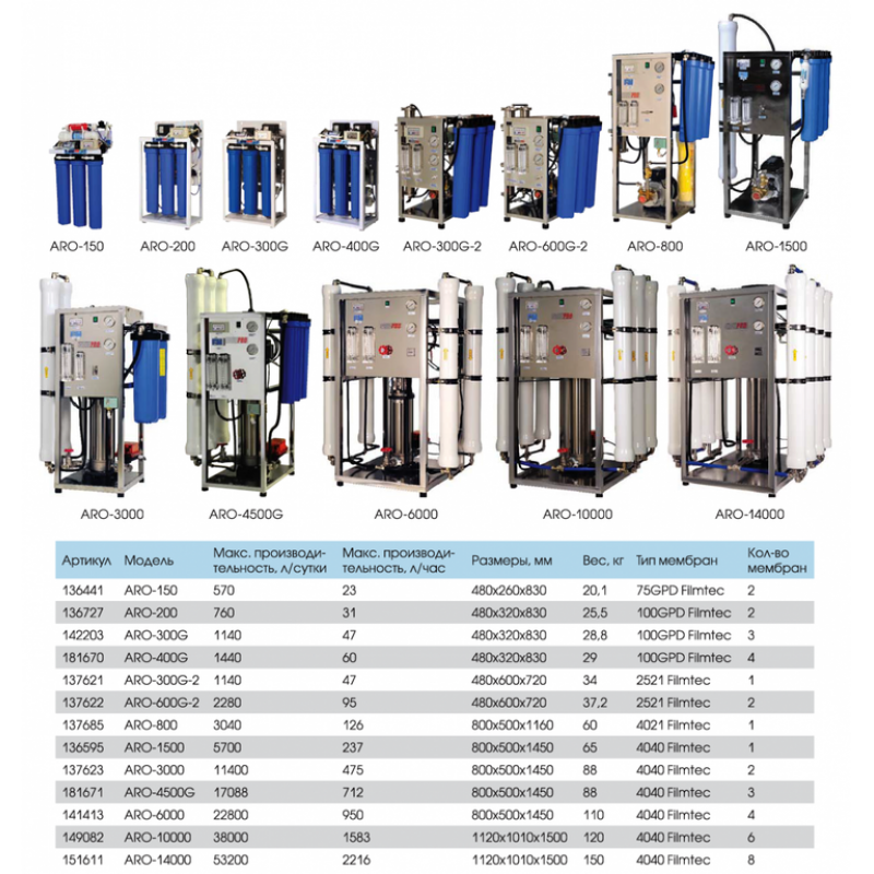 Пятиступенчатая установка обратного осмоса с насосом Aquapro ARO-300G имеет следующие особенности: