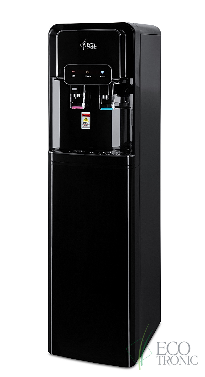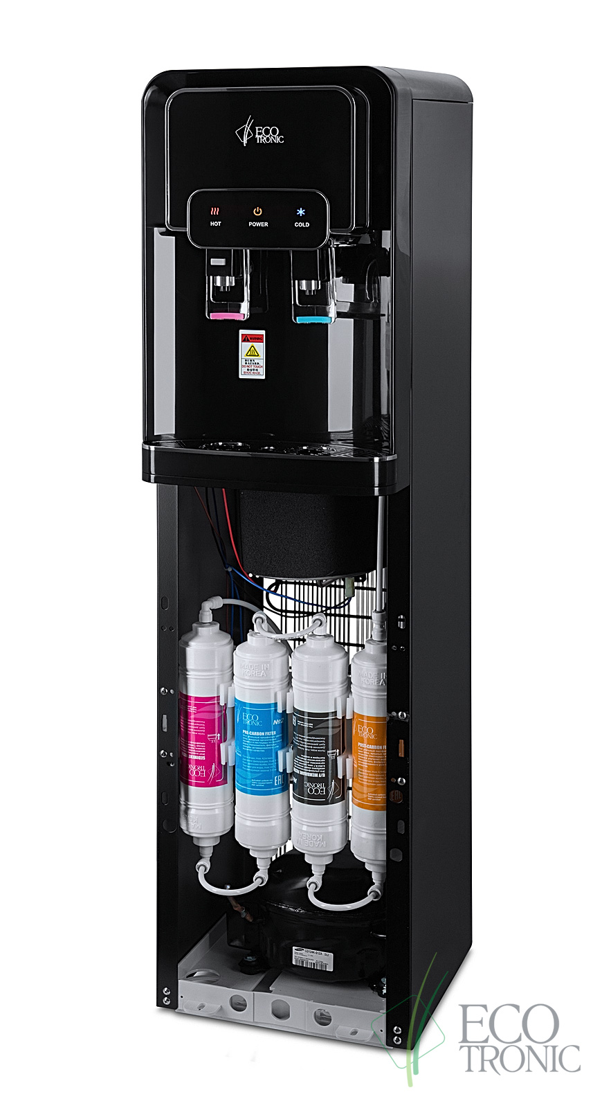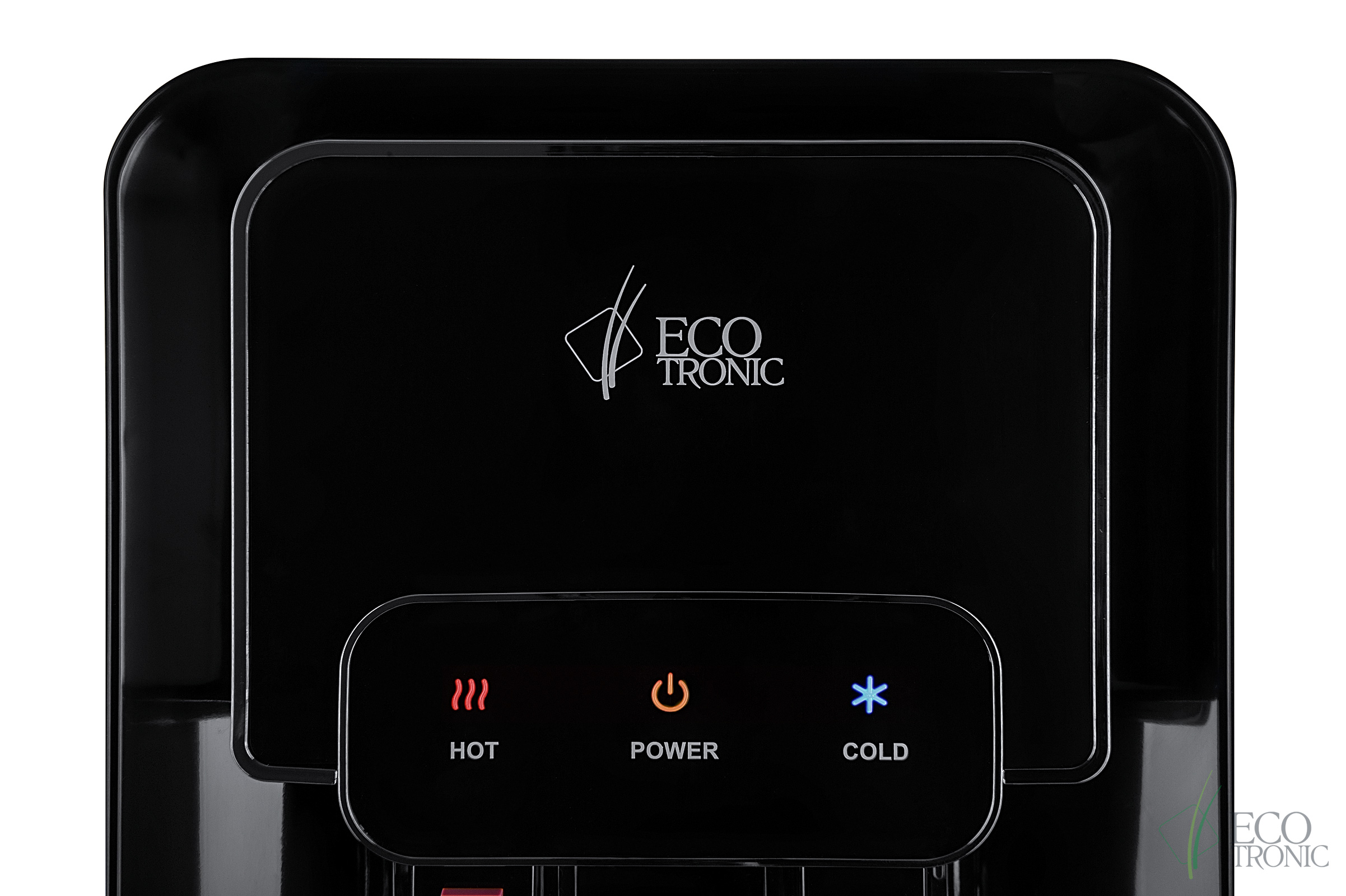 Пурифайер напольного типа с ультрафильтрационной системой очистки воды. Бак холодной воды цельнотянутый, емкостью 7 л. Бак горячей воды также 7 л. Мощность нагревательного элемента 770 Вт. Защита на кране горячей воды. Краны «нажим кружкой». Выглючатели нагрева и охлаждения сзади на корпусе.