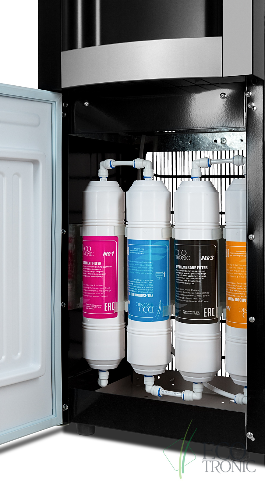 урифайер Ecotronic H1-U4L black с ультрафильтрацией. 4-х ступенчатая система очистки. Краны подачи воды «нажим кружкой». бак гв 1.2л., бак хв 4л. Внешний тэн нагрева.