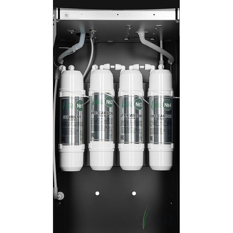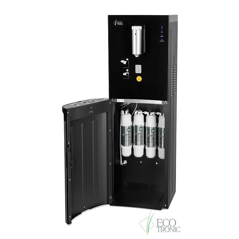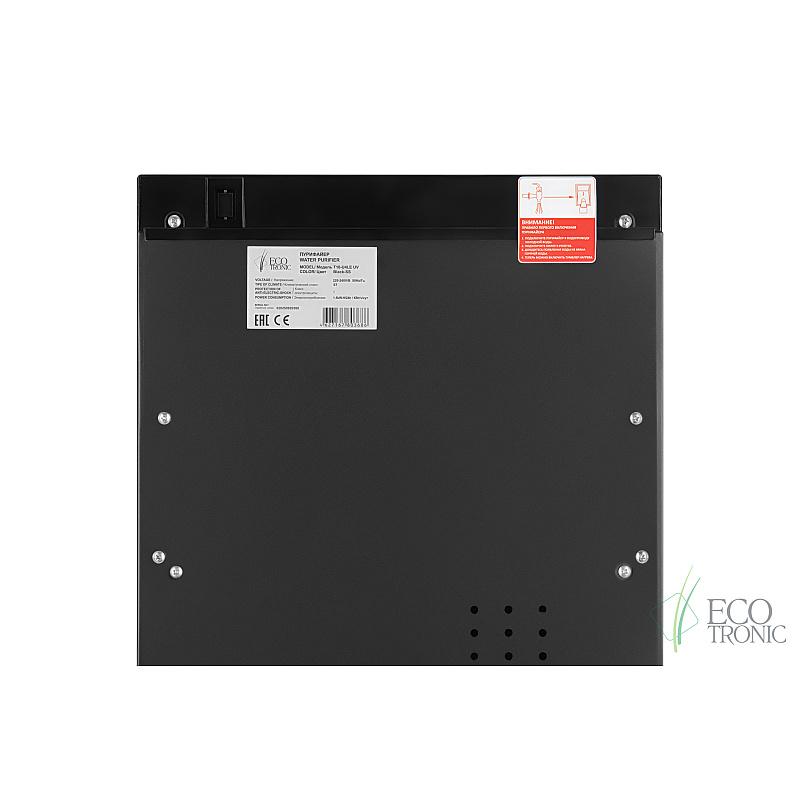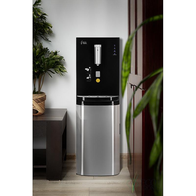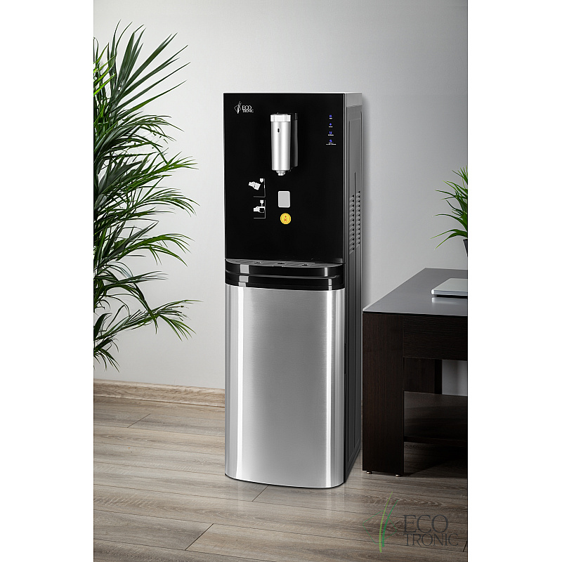 Уникальный пурифайер напольного типа, в котором управление реализовано с помощью кран-блока управления. Пурифайер включает в себя 4-х ступенчатую систему фильтрации с UF мембраной, а также UV лампу для дезинфекции и сохранения уже приготовленной (отфильтрованной) воды в аппарате как можно дольше свежей. Обработка UV-лампой происходит в течение 5 мин, каждые 30 мин. Стильный дизайн с одним краном подачи воды (горячей воды, холодной воды или воды комнатной температуры ). Выбор режима подачи воды поворотом, включение с помощью нажима кружкой. Защита от случайной подачи горячей воды, снимается касанием сенсорной кнопки. Индикация в случае необходимости замены фильтров. Корпус черного цвета со вставками из нержавеющей стали.