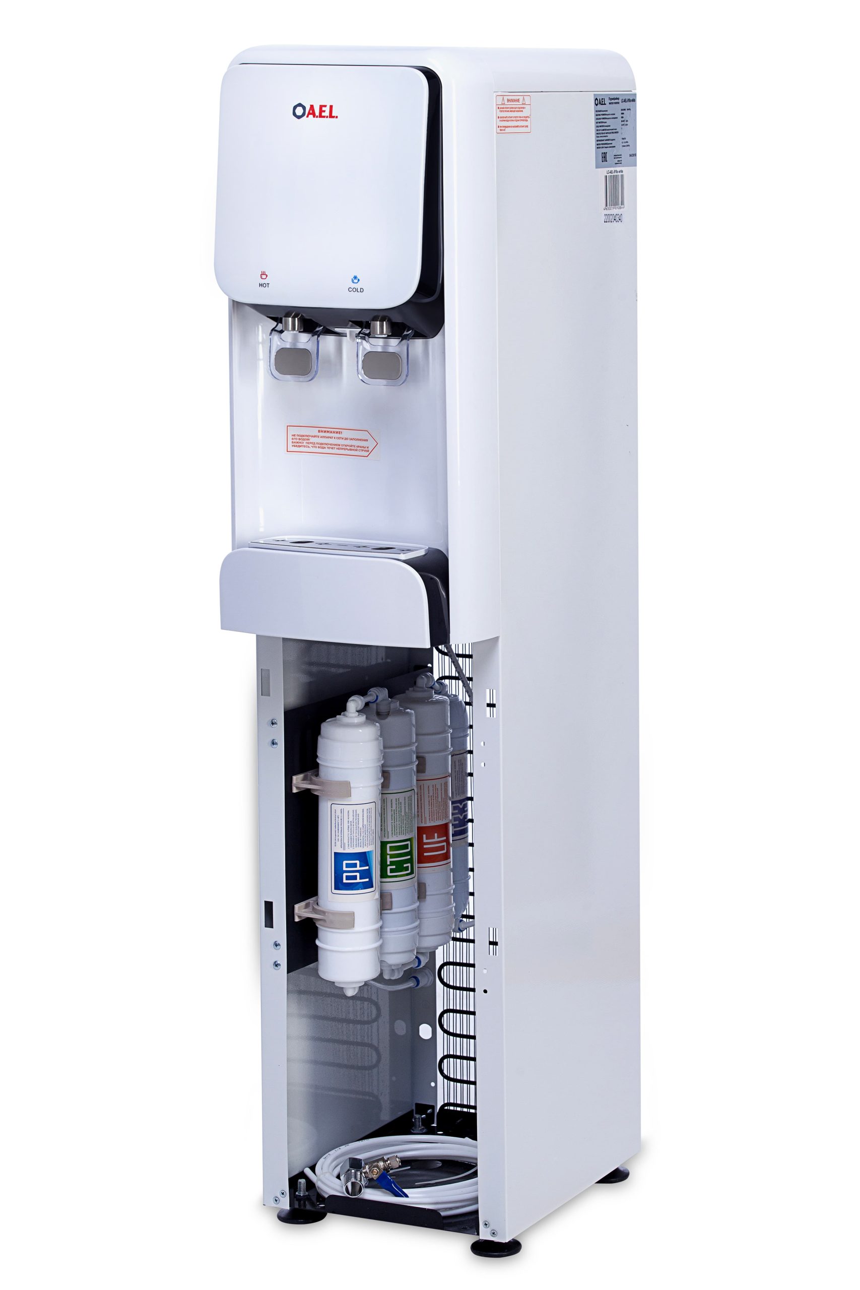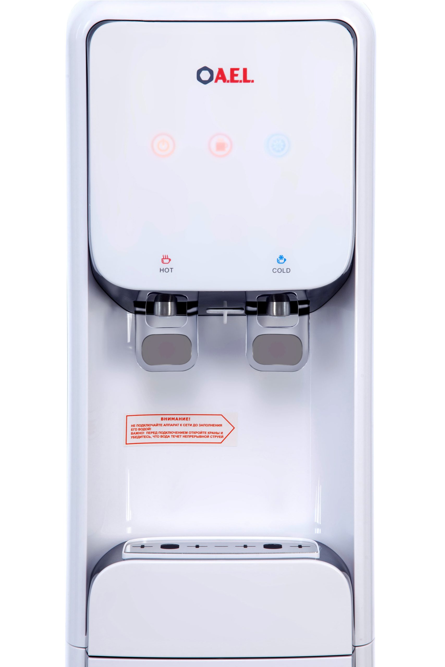 Новая модель смело занимает свое место в ряду элитных пурифайеров для требовательных клиентов. Высокий элегантный корпус современного солидного дизайна. Белый цвет ровного приятного оттенка. Данная модель хорошо впишется в строгий дизайн кабинета и офиса, а удобные краны нажим чашкой с защитой от случайного нажатия, расположеные на комфортной высоте для пользователя, дополняют образ.
