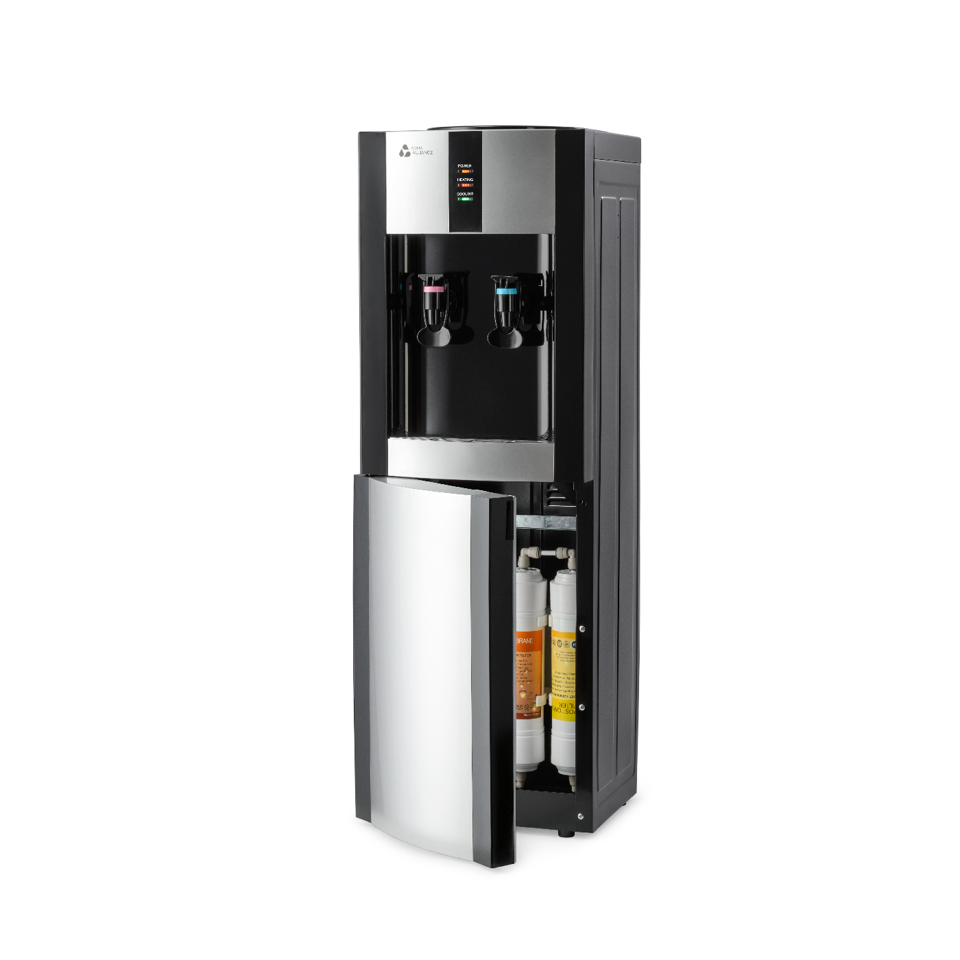 Представляем новинку в ассортименте AQUAALLIANCE — напольный пурифайер с электронным охлаждением с 4х UF-системой очистки. Модель комплектована внешним нагревательным элементом и баком нагрева 1,2л, удобными краниками черного цвета нажим чашкой с внутренней резьбой . Цвет: черный корпус с серебряными вставками, боковые панели черного цвета. Комплектация: кран врезки, трубка 1/4 — 3 метра, фильтры тип — I тип, фильтры размер — 12″, инструкция. Для того чтобы пурифайер производил воду постоянного высокого качества и вкуса, необходимо регулярно производить замену фильтров. Для замены подойдут фильтры Aquaalliance 14 и 12 размера , I и U тип — взаимозаменяемы