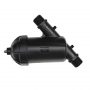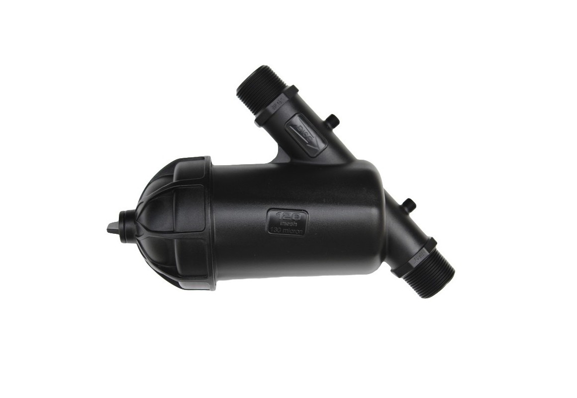 Фильтр дисковый F40YD состоит из пластикового корпуса и крышки. Крышка является съемной и обладает резьбой для ее откручивания и замены или прочистки фильтрующего дискового картриджа. Для установки фильтра в водопроводную систему в его корпусе имеется два выхода с наружной резьбой 1 1/4″. Также в корпусе предусмотрены два выхода с резьбой для подключения к нему двух манометров с целью наблюдения за давлением на входе и выходе из фильтра и своевременной очистки дискового картриджа.