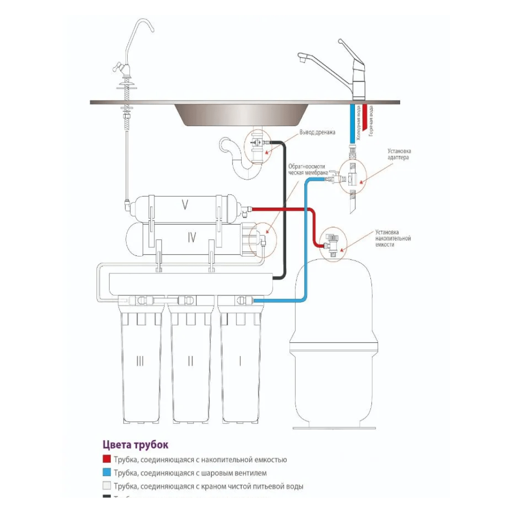 Это полноценный фильтр обратного осмоса под мойку, который обеспечивает стабильное качество питьевой воды.