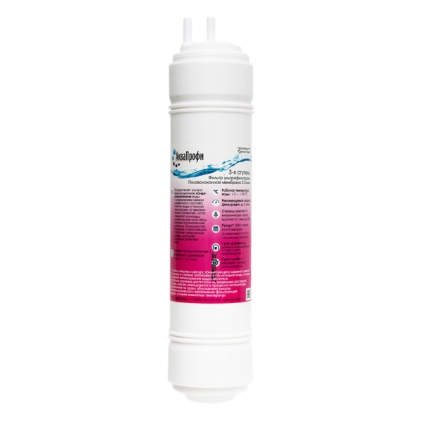 Осуществляет ультрафильтрационное кондиционирование воды с сохранением микроэле- ментного состава, очистку воды и тонкую фильтрацию от механических примесей, останав- ливает коллоиды, молекулярные кластеры, крупные органические молекулы, большинство бактерий и простей-ших. Устраняет неприятные запахи, улучшает вкусовые качества воды.