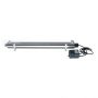 Ультрафиолетовый стерилизатор Raifil UV-110W-R устанавливается в качестве финальной ступени очистки воды от различных микроорганизмов, находящихся в ней. Установка стерилизатора осуществляется при помощи клипс на какую-либо ровную поверхность. Внутри корпуса из нержавеющей стали под кварцевым защитным чехлом располагается ультрафиолетовая лампа. За питание отвечает электронный адаптер 220 В/50 Гц, присоединяющийся к торцу корпуса.