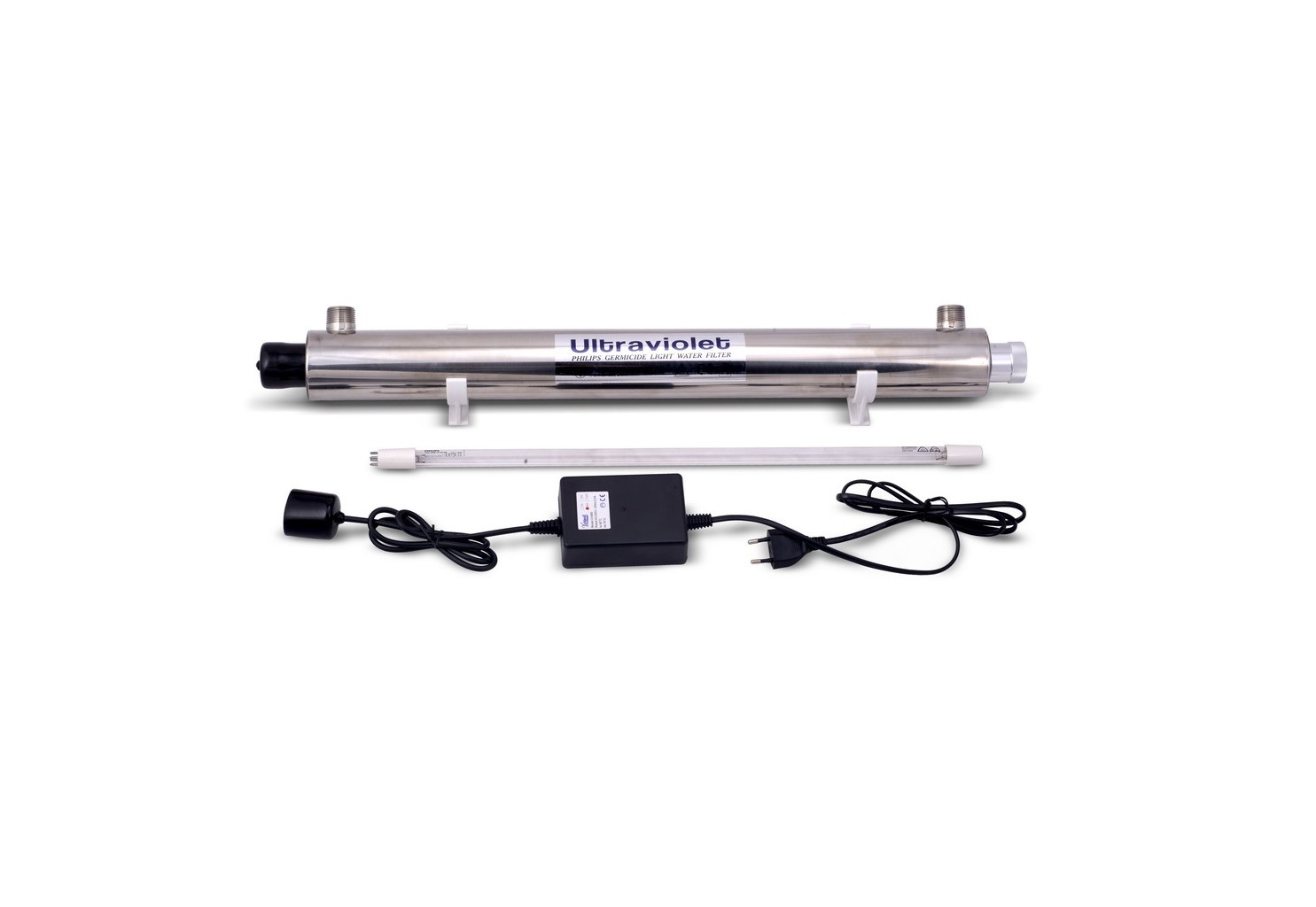 Процесс ультрафиолетовой стерилизации представляет собой облучение воды ультрафиолетом, за счет чего из нее удаляются различные микроорганизмы, бактерии и вирусы. Эффективность стерилизации максимальна в том случае, когда вода прошла первичную обработку от солей жесткости, взвешенных частиц и различных примесей.