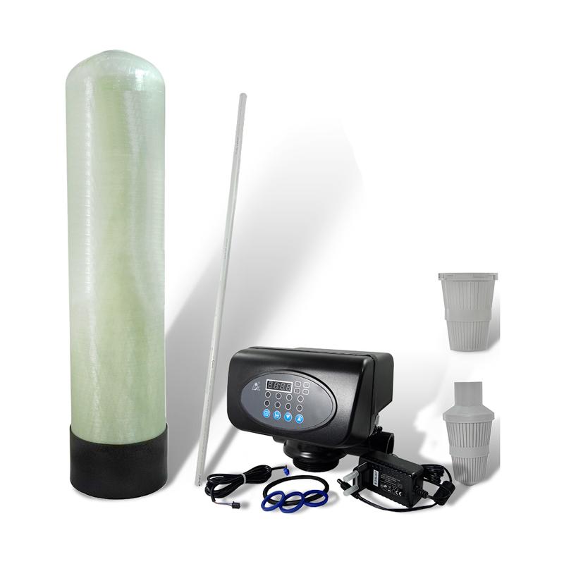 Клапан автоматического управления применяется в системах обезжелезивания воды. Имеет стойкость к истиранию, меньшую подверженность коррозии. Клапан управления Runxin TMF67 (P1) дополнительно требует стеклопластиковую колонну с верхним резьбовым выходом 2 1/2″, а также какой-либо фильтрующий наполнитель (МЖФ, активированный уголь и др.). После сбора системы клапан подключается к трубам исходной и очищенный воды, а также к дренажному сливу для процесса промывки наполнителя.