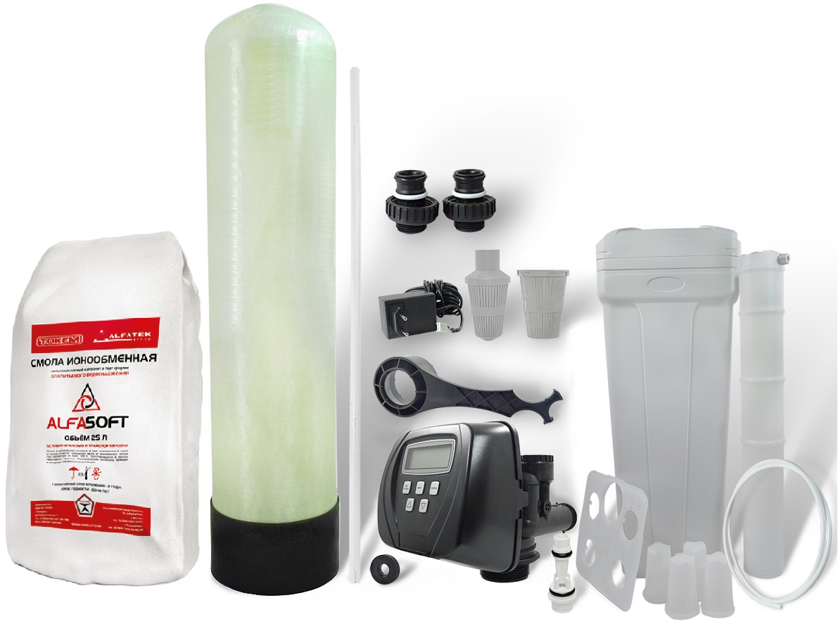 Очистку воды в фильтре Умягчителе для воды осуществляет Фильтрующий материал Alfasoft. Промывается данный фильтра-материал автоматически, путём подачи в колонну раствора NaCl из солевого бака, где насыпанная таблетированная соль растворилась в воде. В процессе промывки Фильтрующий материал восстанавливает свои свойства умягчения воды, а использованный раствор уходит через дренажный выход управляющего клапана в канализационную систему. В период промывки не рекомендуется использовать выходящую воду из фильтра. По этой причине за частую время начала регенерации фильтра устанавливают в ночное время суток, когда вероятность пользования холодной водой минимальная.