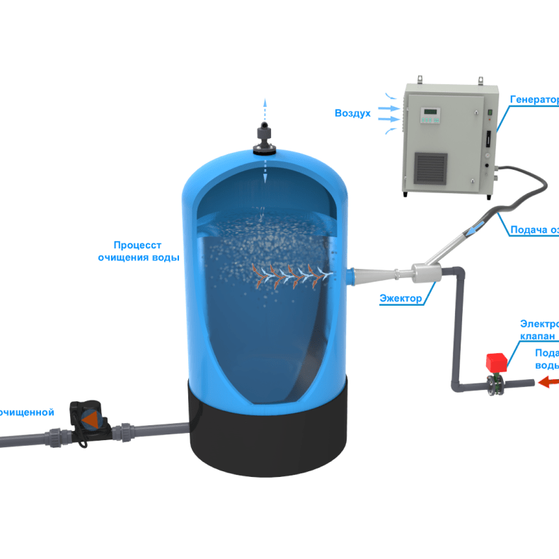 Озон используется для дезинфекции воды и устранения органических загрязнений и микроорганизмов. Этот метод позволяет обеспечить безопасность продуктов и воды
